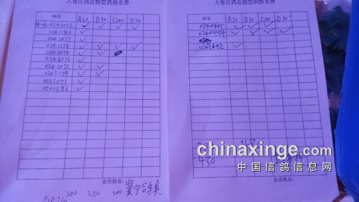 大曹庄鸽会25年秋380公里扶沟集鸽清单