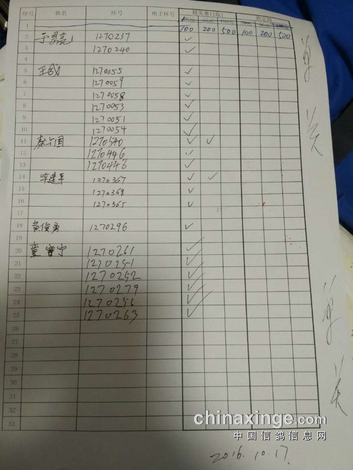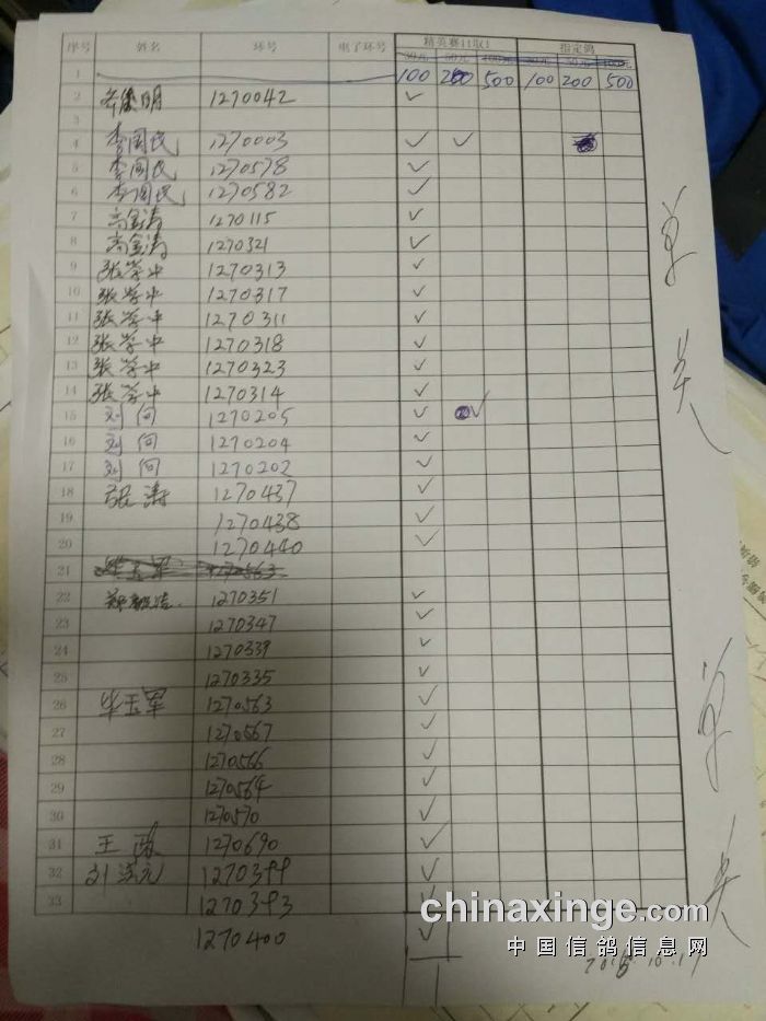 25年大兴“金洲杯”100环一关有效归巢(按人名)