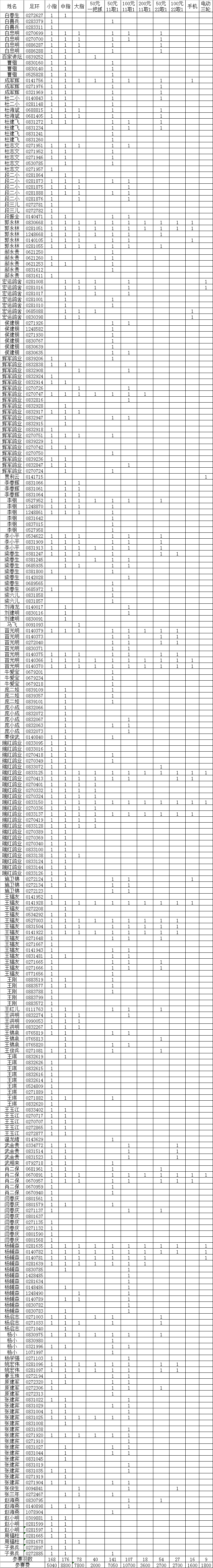 300元特比成绩(按名次)
