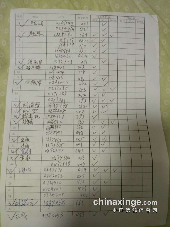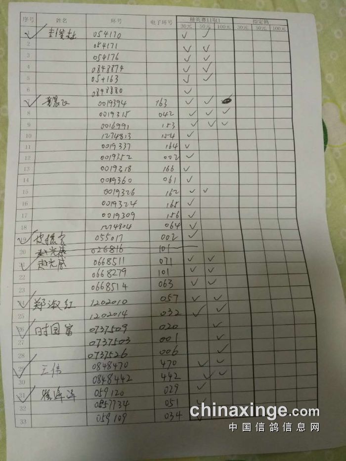 25年大兴“金洲杯”100环一关有效归巢(按人名)