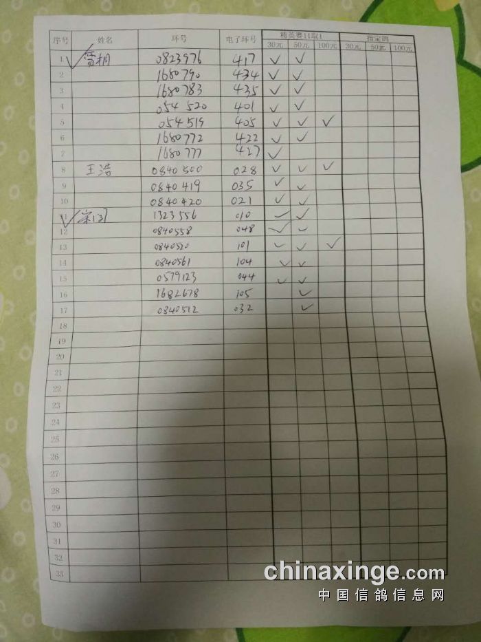 25年大兴“金洲杯”千元环一关有效归巢(按棚号)