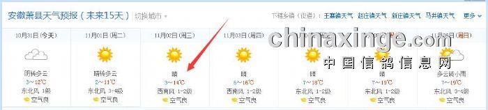 淮北市信鸽协会2016年秋季第二关350公里平原站,定于11月1号集鸽2号放飞;集鸽地点:恒大铭都桥南租赁站内;集鸽时间:下午4---7点,以下是沿途天气预报: