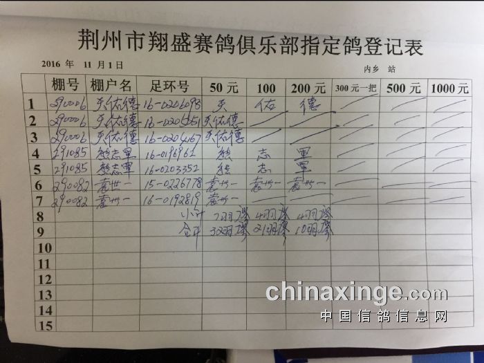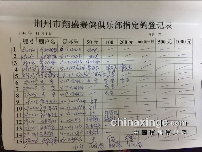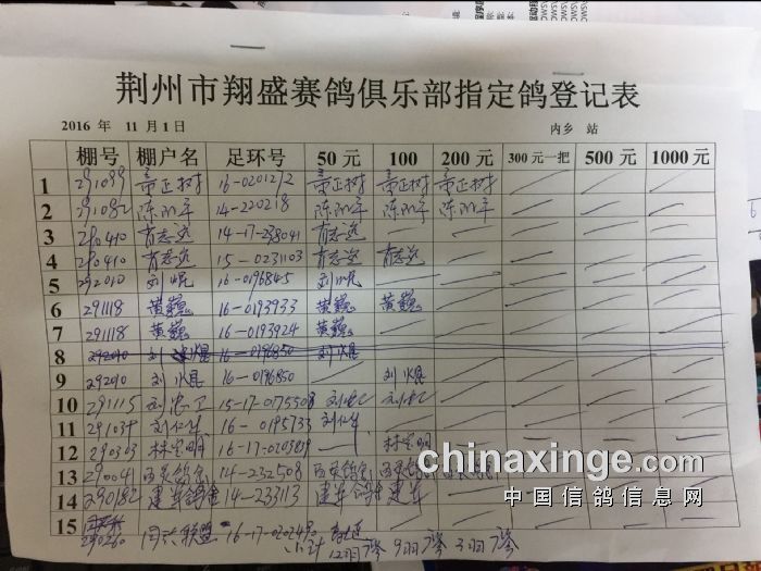 2017年11月22日全国千公里联赛廊坊站比赛集鸽清单