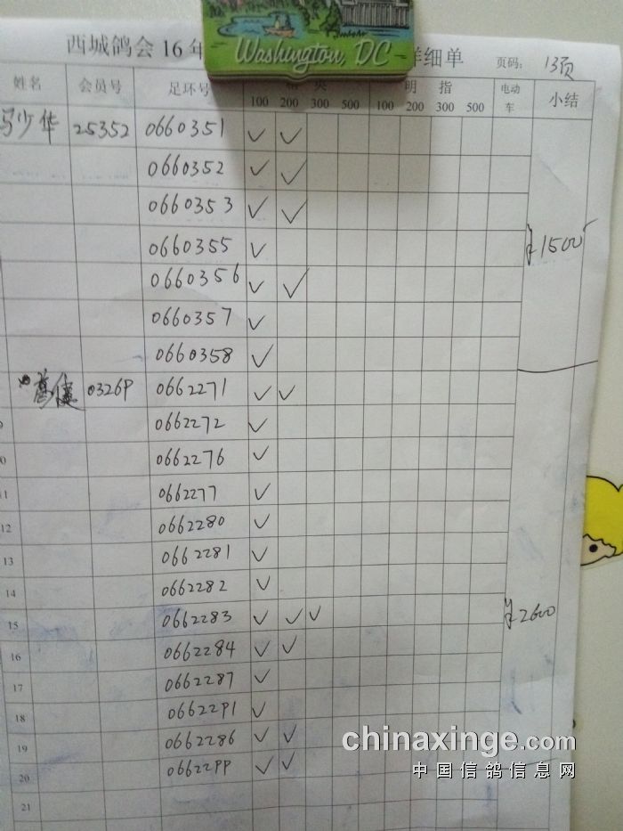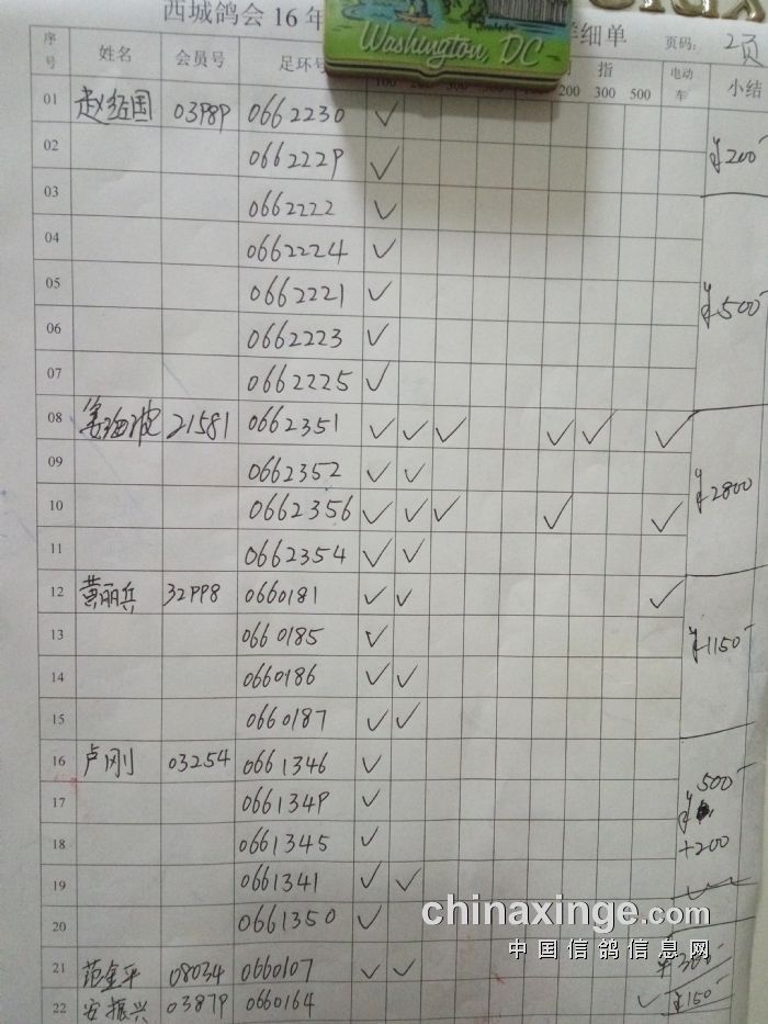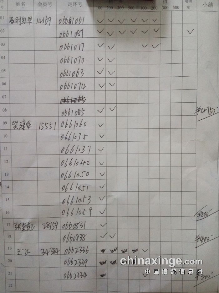 西城鸽会500特比第二关北区临时成绩