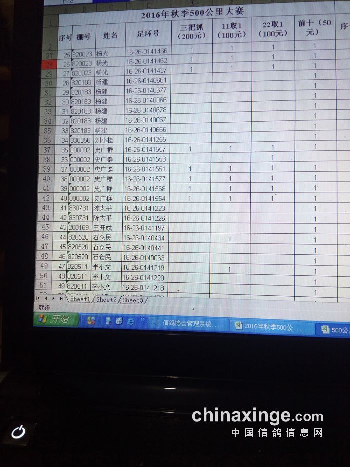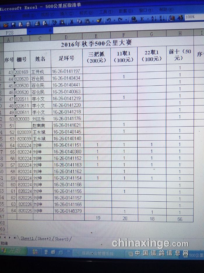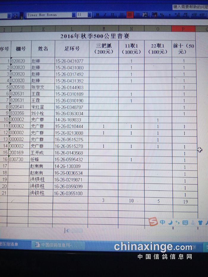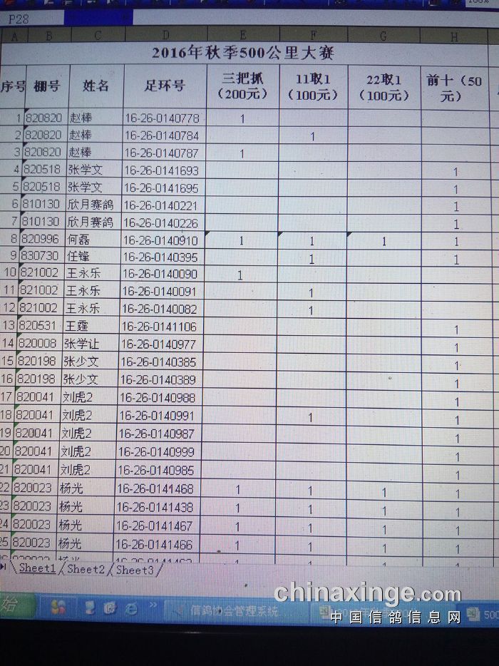 2018年泾阳信鸽协会通讯赛500公里成绩