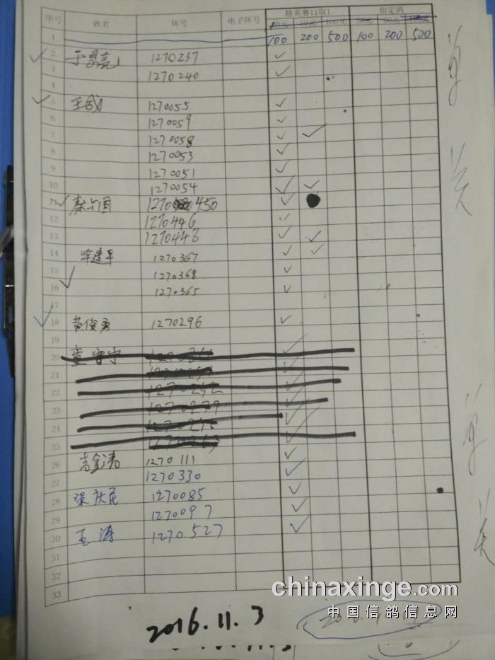 25年大兴“金洲杯”千元环一关有效归巢(按棚号)