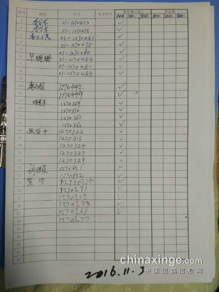 25年大兴“金洲杯”100环一关有效归巢(按人名)