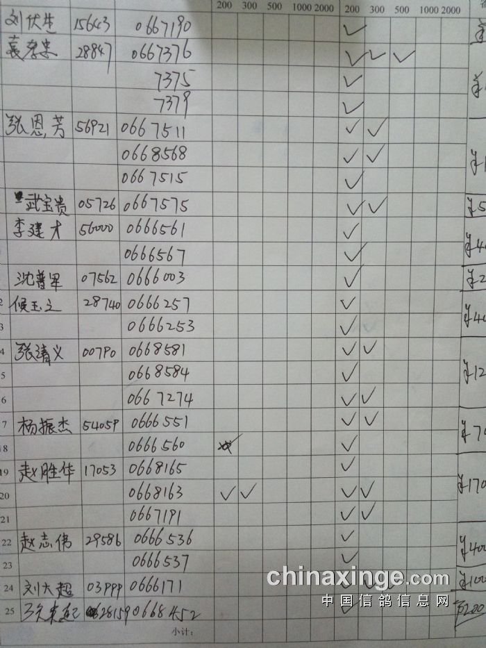 指定,200元,23羽,300元,20羽,500,8羽,1000元,1羽,2000元,1羽,