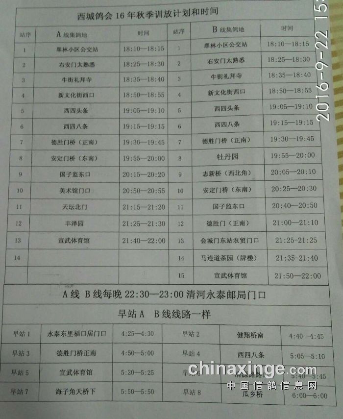 西城鸽会今晚10明早11训100公里,B线,请互相转告。谢谢!