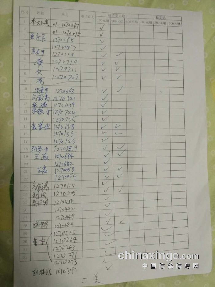 25年大兴“金洲杯”100环一关有效归巢(按人名)