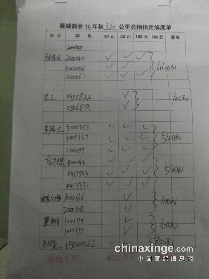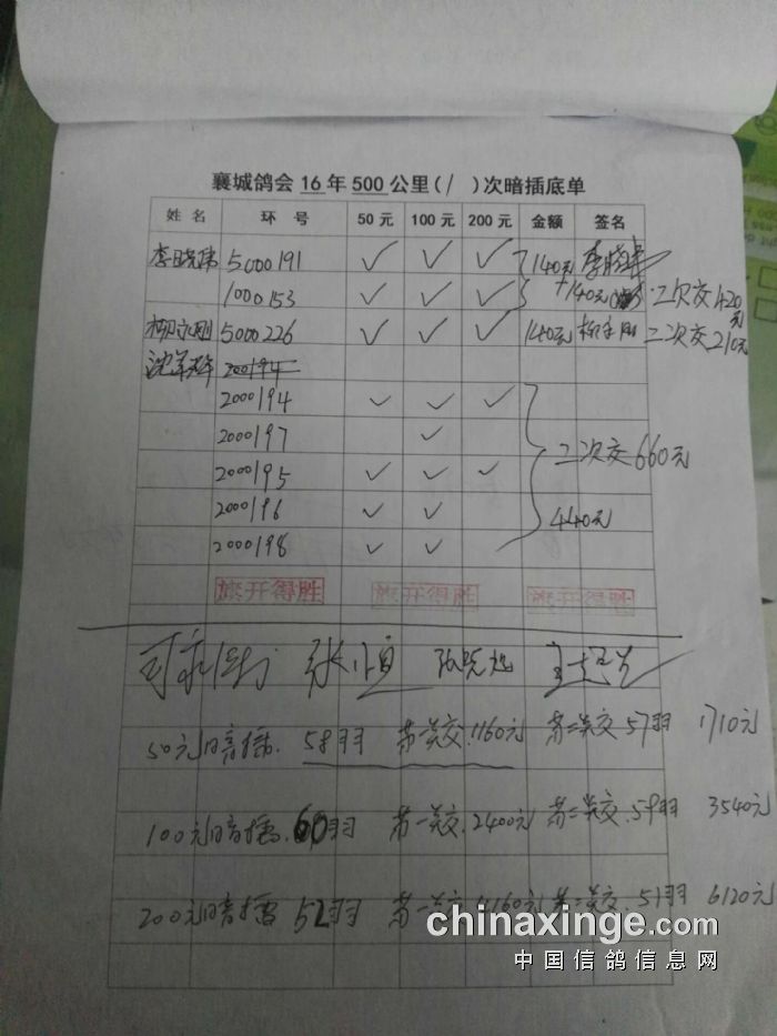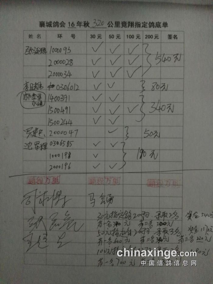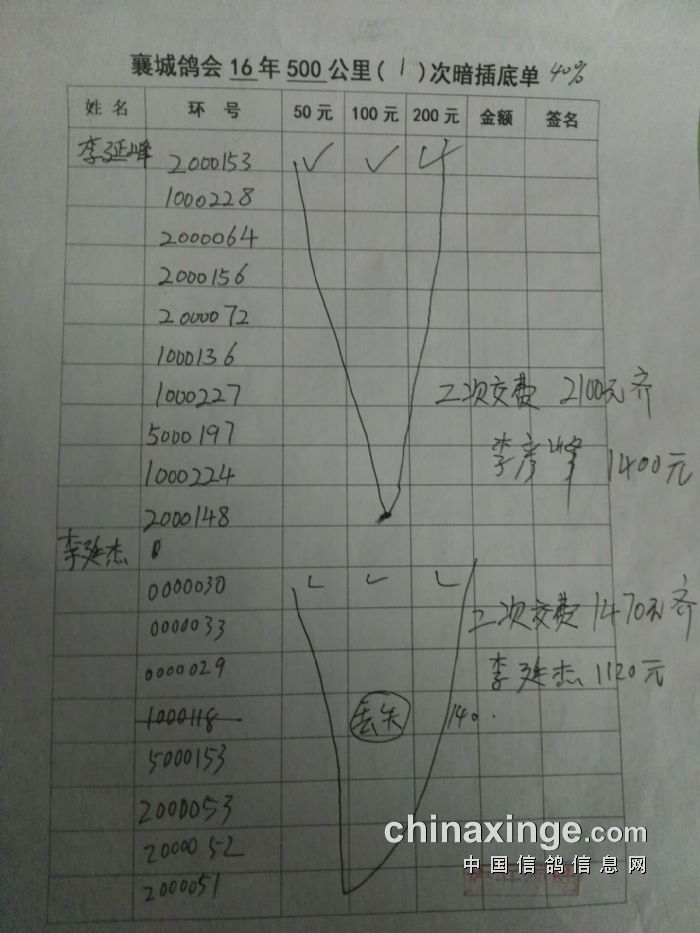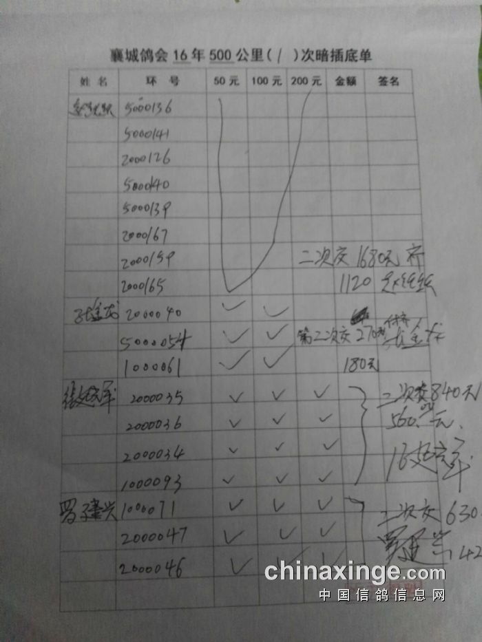 襄城县信鸽协会指定鸽、第二次暗插底单