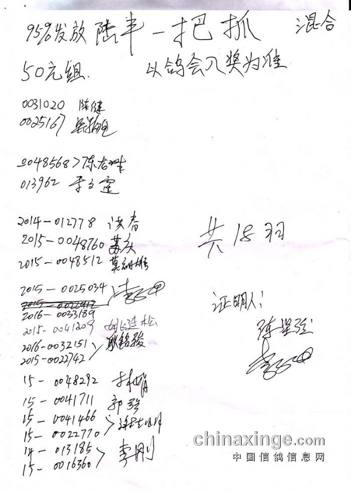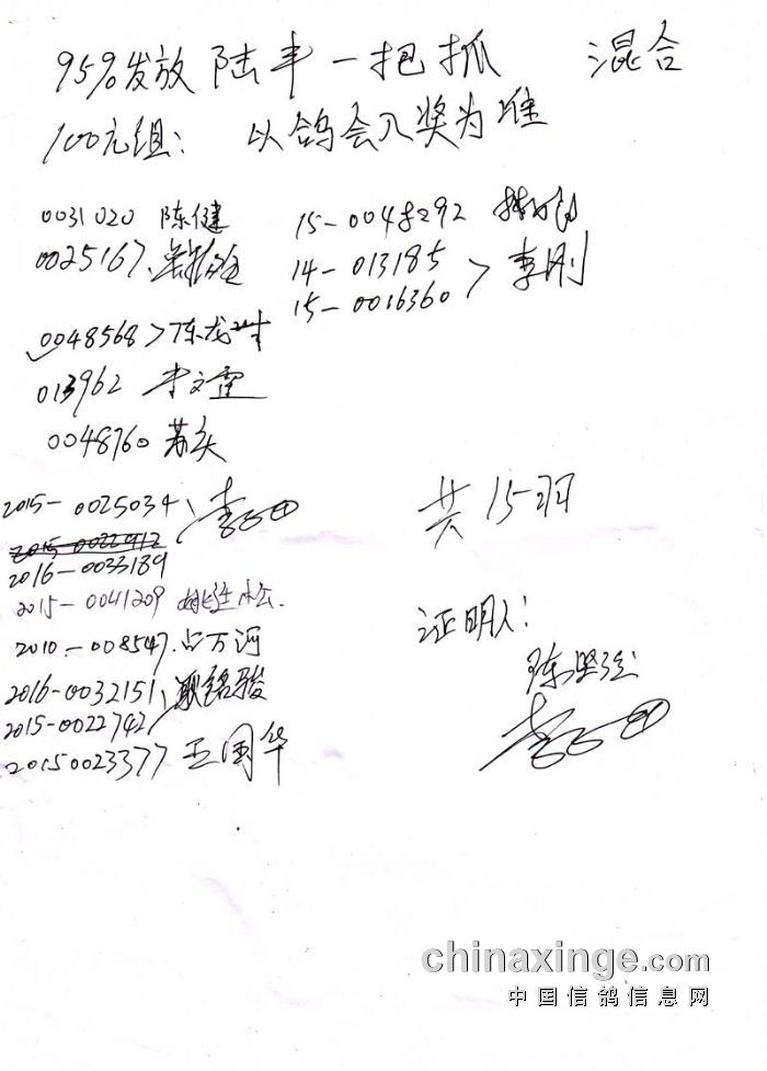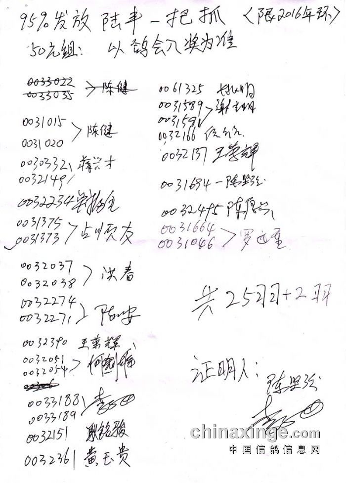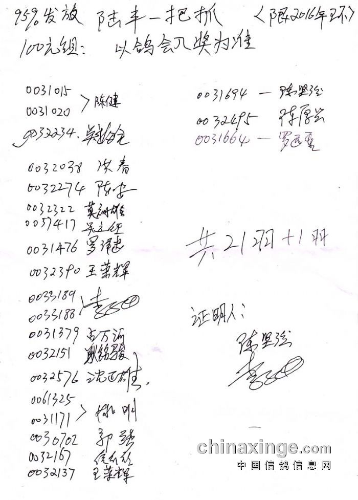 广西北海信鸽协会2016年下半年陆丰站指定鸽名单