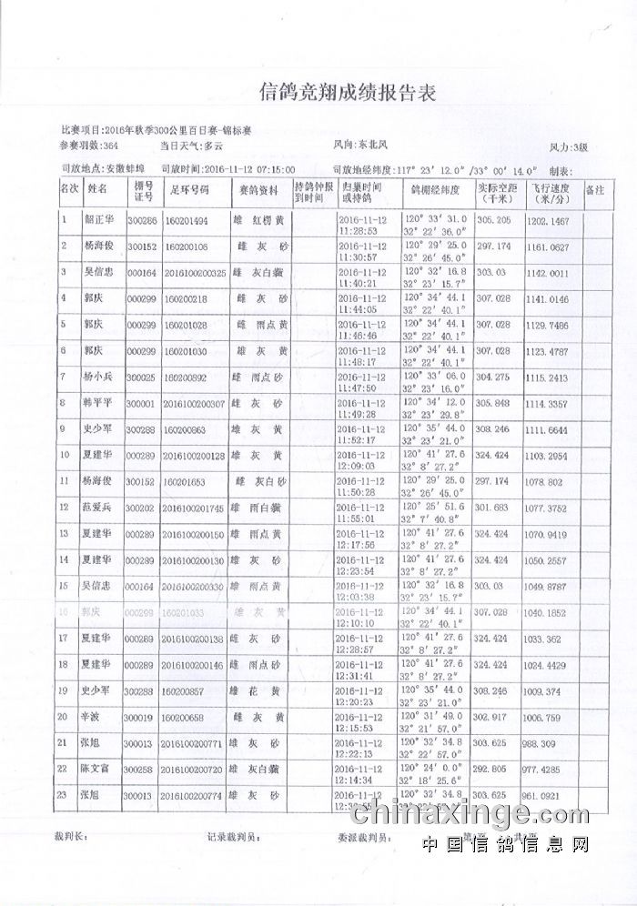 如皋市2023年秋季550公里特比环第一关临时成绩