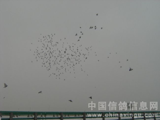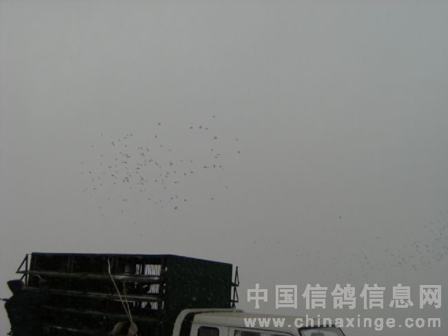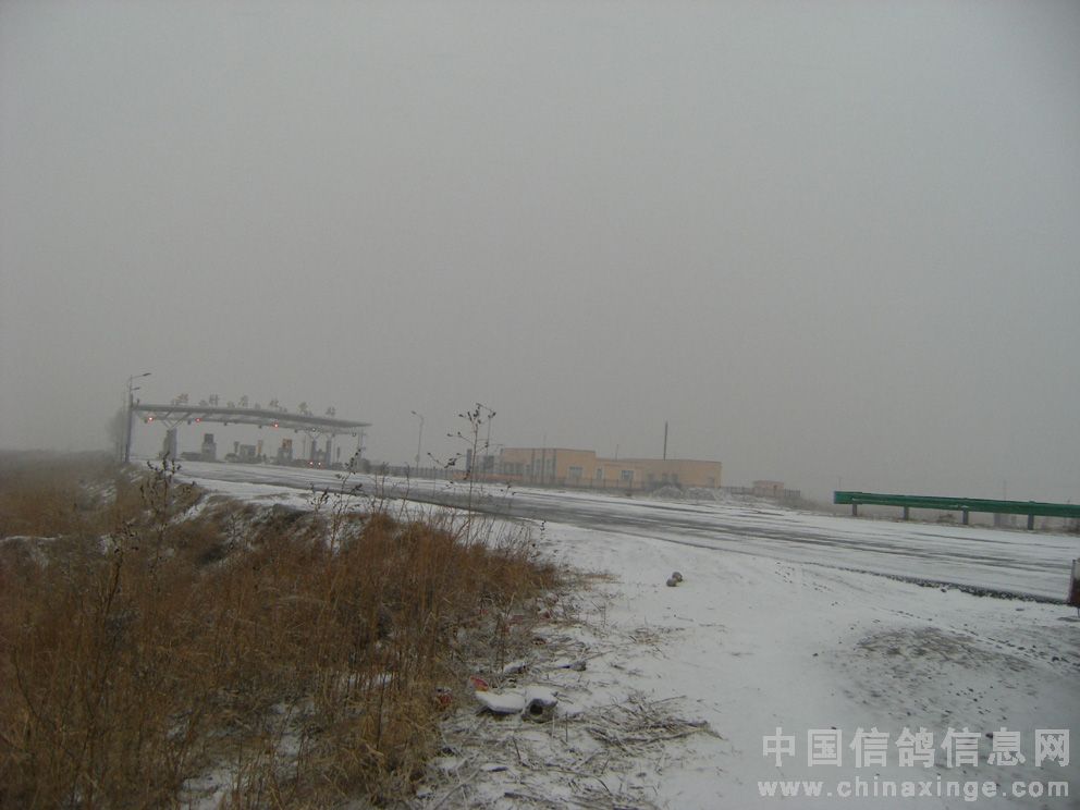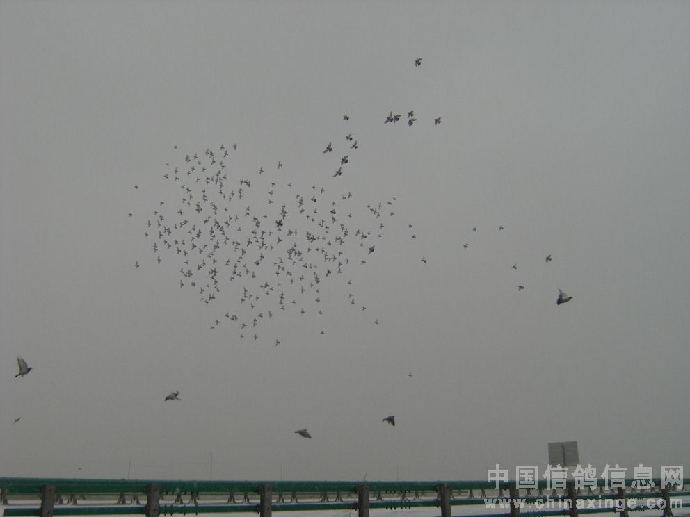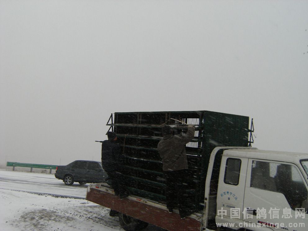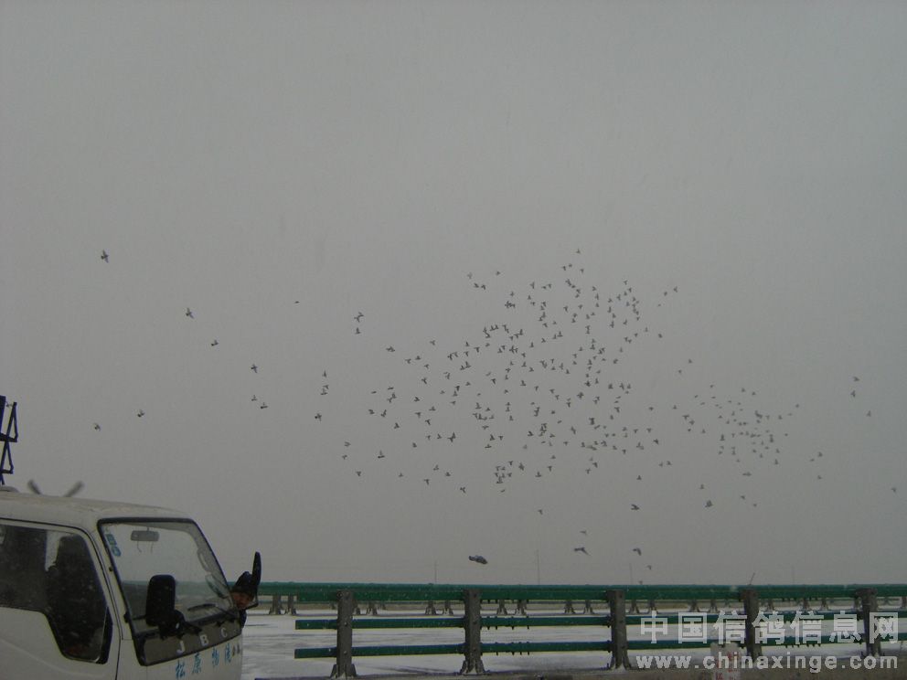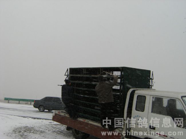 3月12日鸽会计划训放40公里套太,由于天气不好,鸽会改为拐脖店收费站司放。8点10分开笼,赛鸽出笼状况很好,抱成很大一团,但走势不好,在原地久久盘旋。不一会司放地就下起小雪,在回来的路上雪越来越大,鸽子归巢肯定不好,虽然鸽会缩短训放距离,还是不如天算。