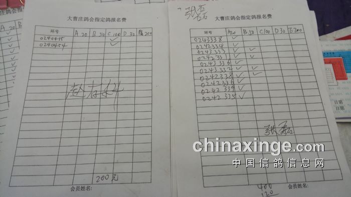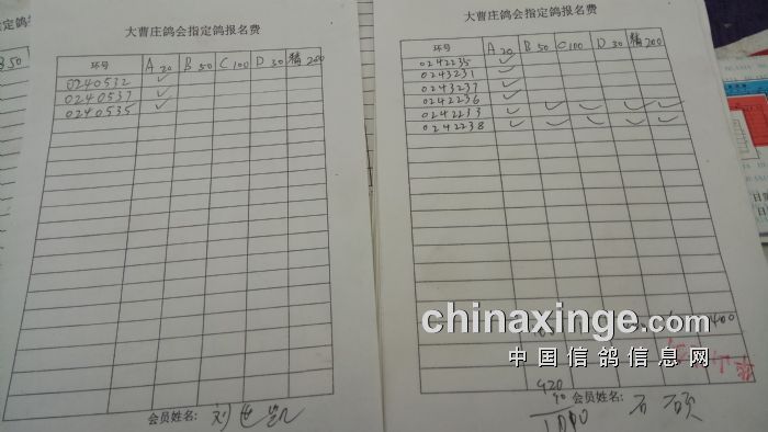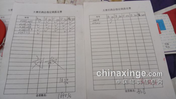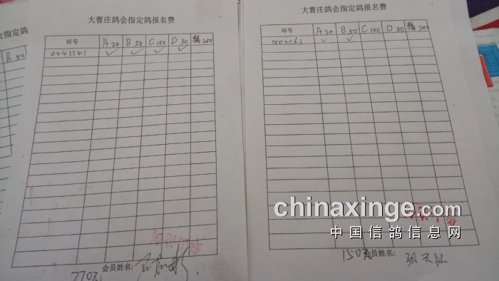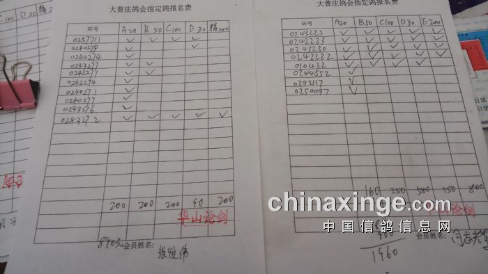 大曹庄鸽会25年秋380公里扶沟集鸽清单