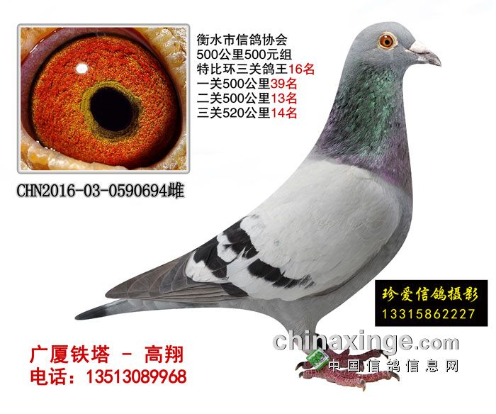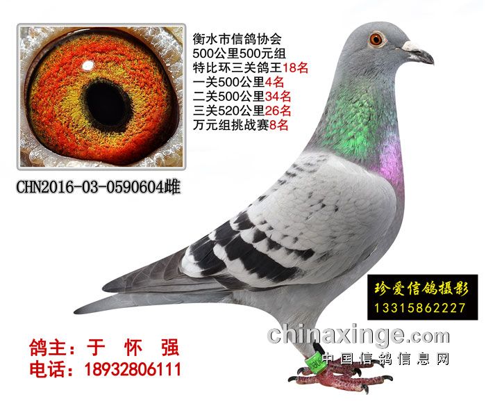本人买了一羽信鸽。号码是2016-03-0593035是谁的鸽子。带特比环。联系电话13780485359