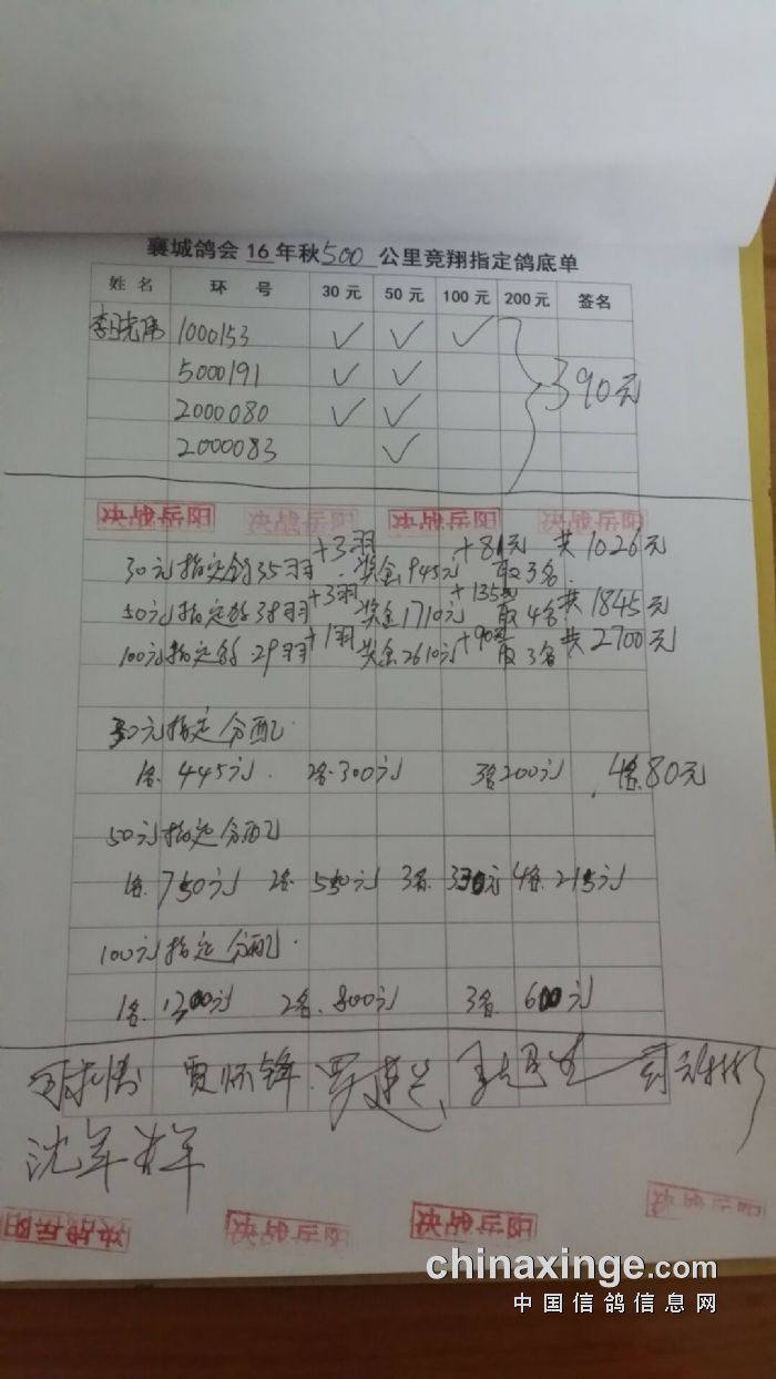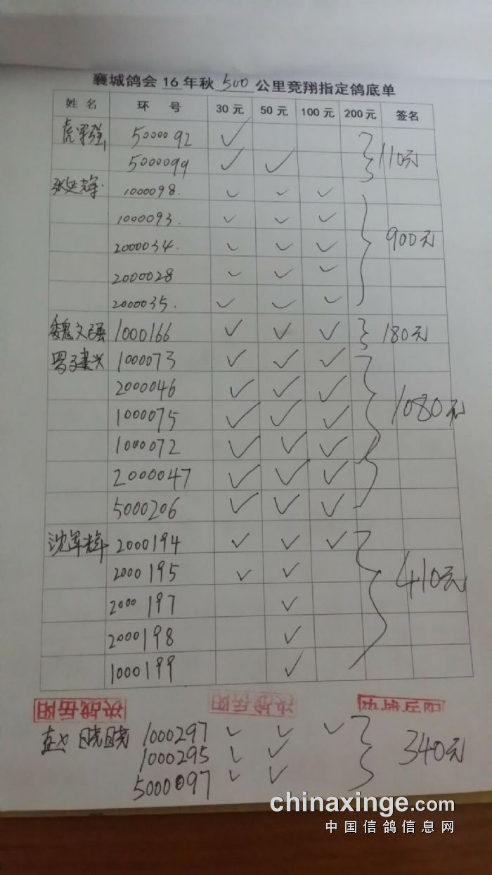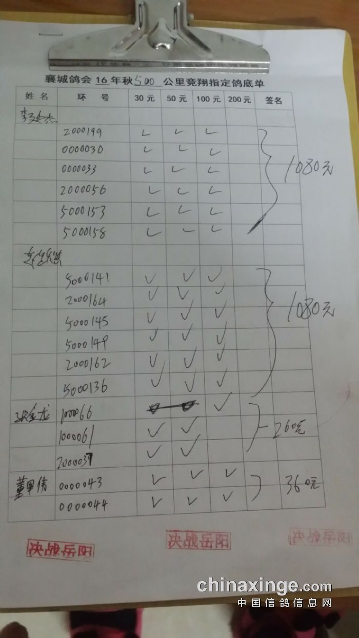 襄城信鸽协会25年秋季第三关510公里湖南南县比赛集鸽清单