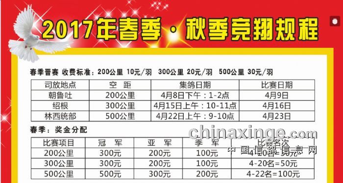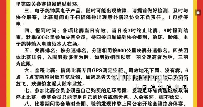开原市信鸽协会2017春季.秋季《竞赛规程》