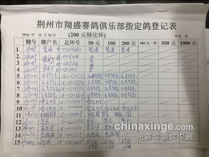 2017年11月22日全国千公里联赛廊坊站比赛集鸽清单