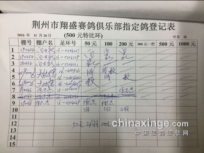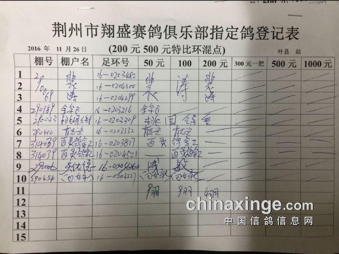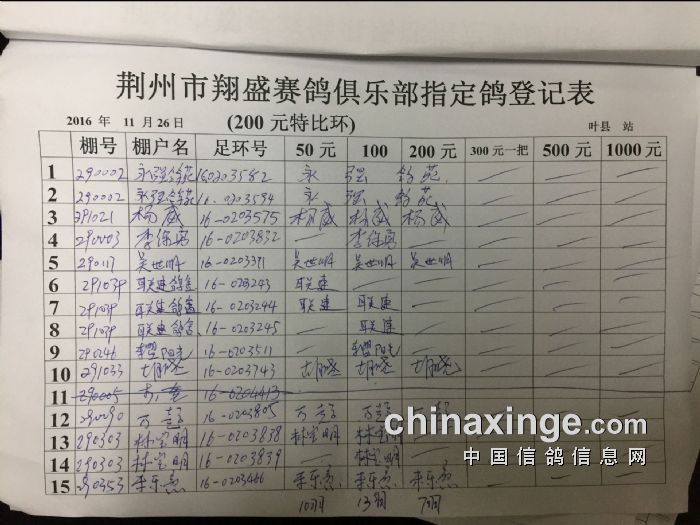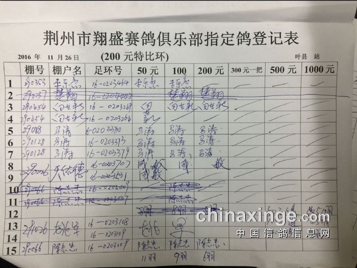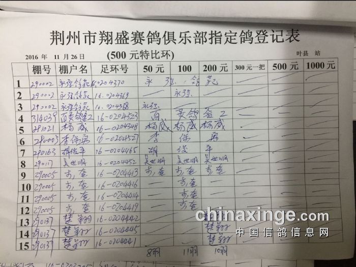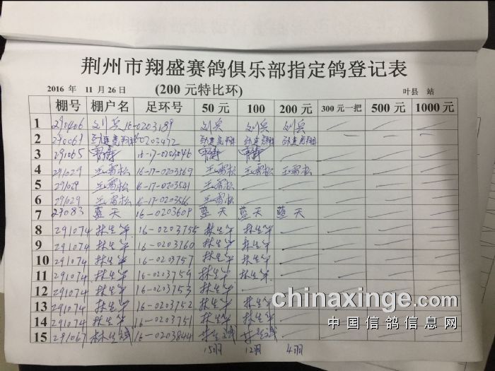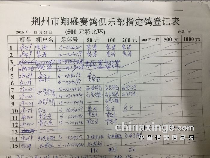 2017年11月26日480公里新郑站年度王中王比赛集鸽清单