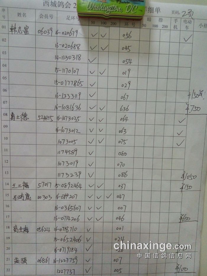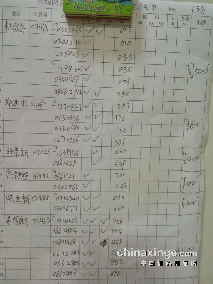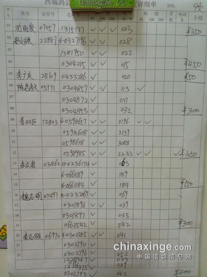 西城第八届“跨双年度最佳鸽舍、最佳鸽手”秋季积分光荣榜排名