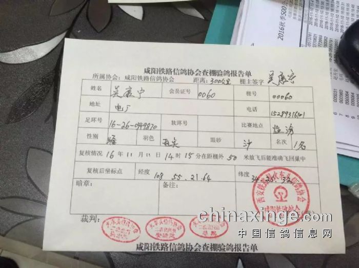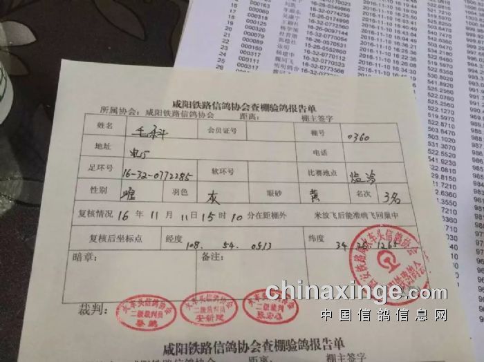 咸阳铁路信鸽协会2024年秋季第二关指定成绩