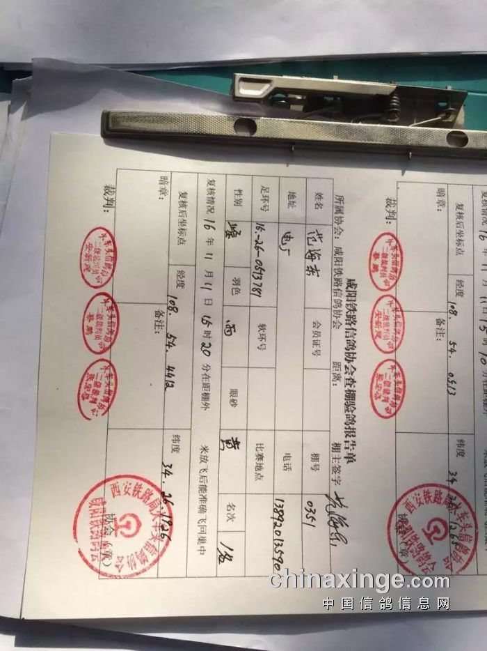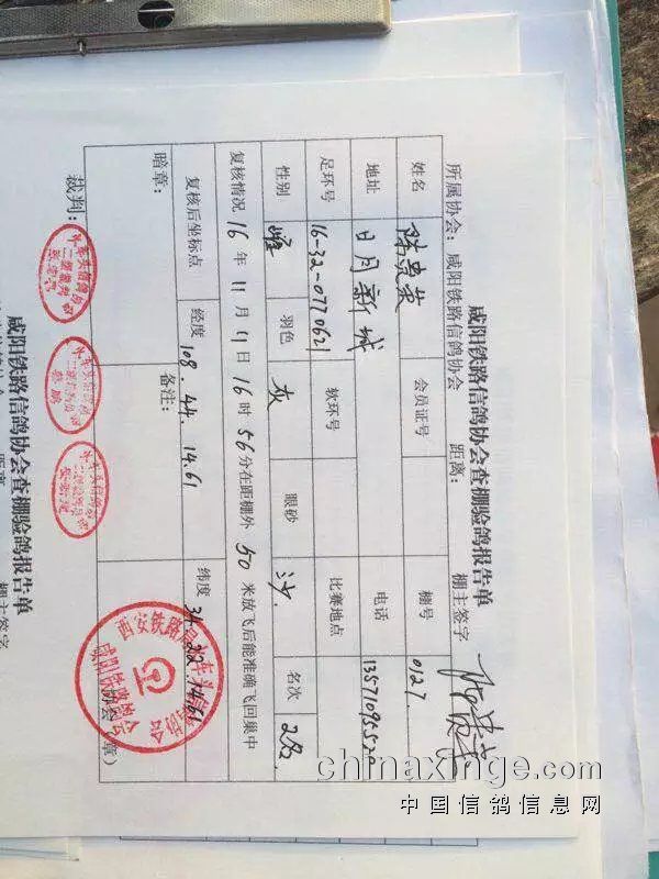咸阳铁路信鸽协会2024年秋季第二关指定成绩