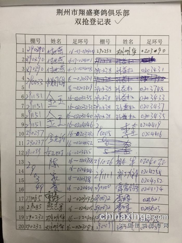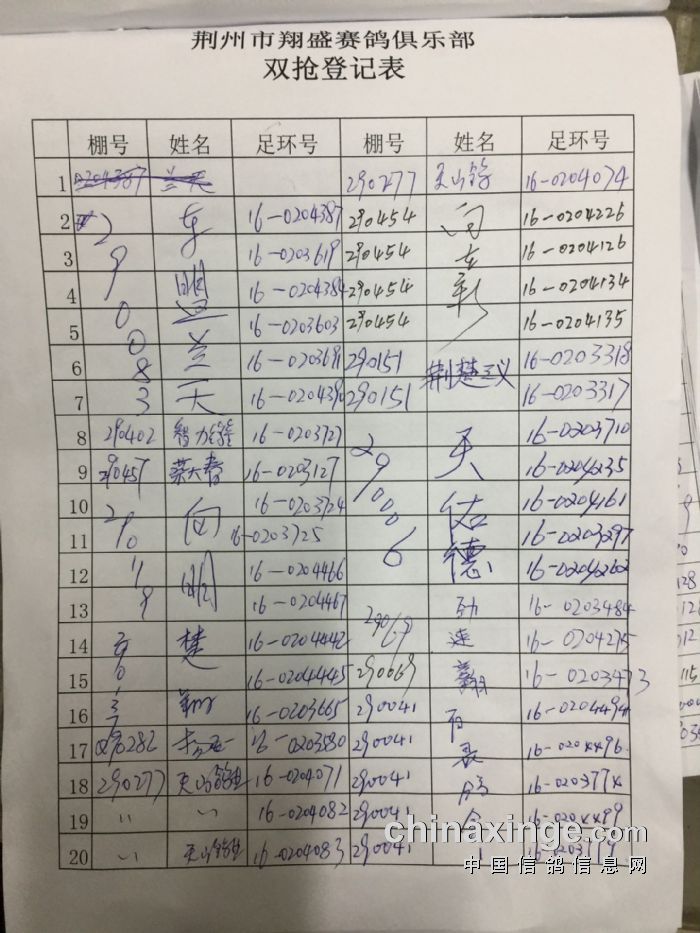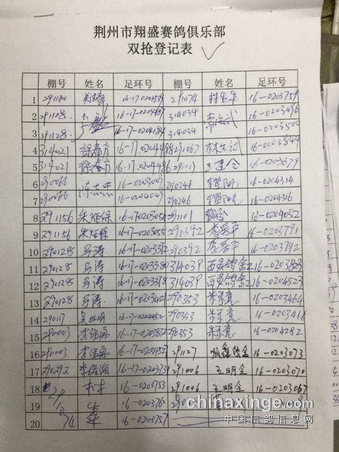 2017年11月22日全国千公里联赛廊坊站比赛集鸽清单