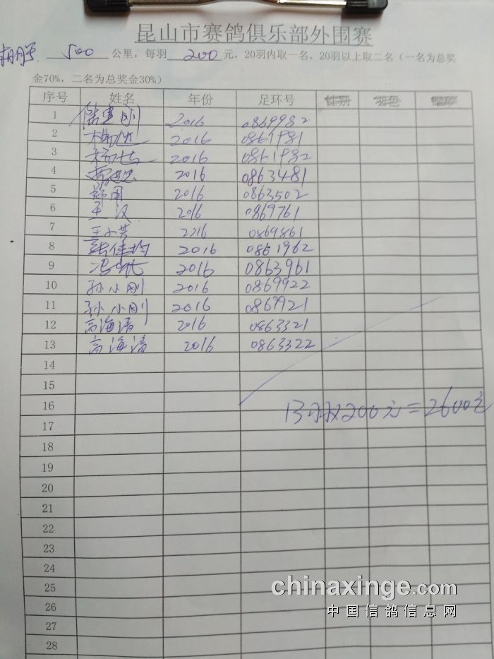 集鸽总羽数:1744羽,其中精英赛:511羽,棚号赛:139羽,五羽团体赛:57组。
