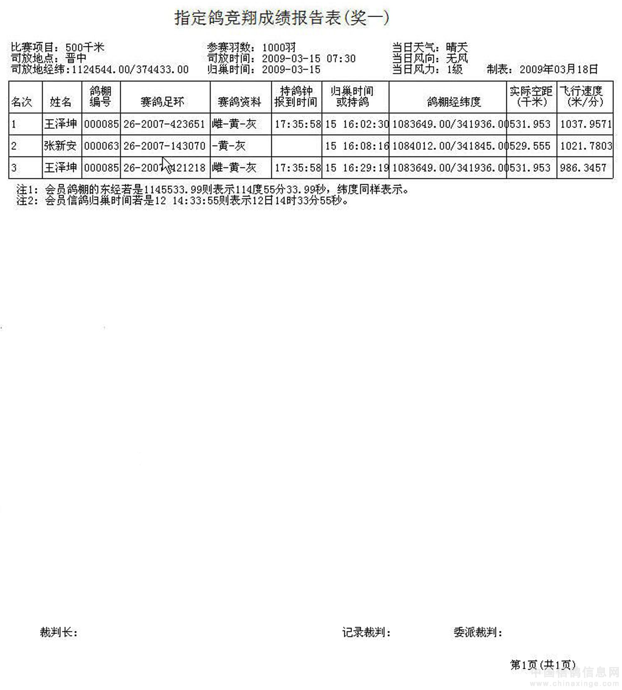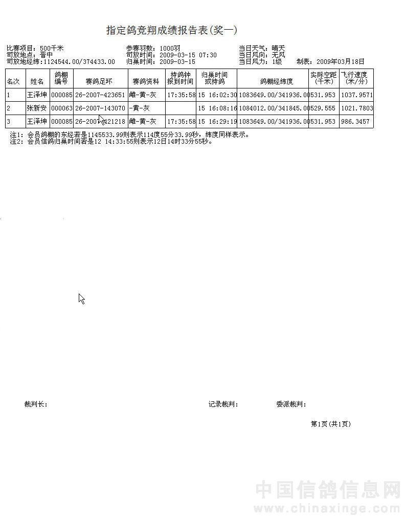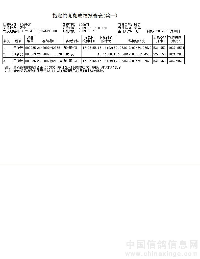 咸阳铁路鸽会指定鸽获奖名单