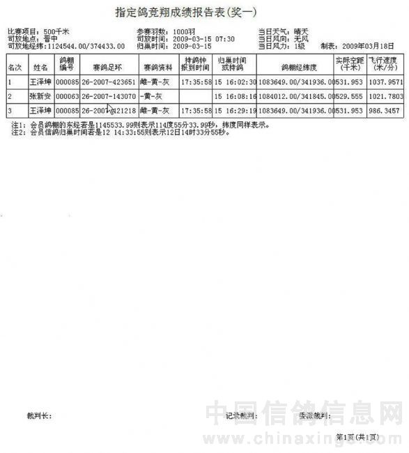 咸阳铁路信鸽协会2024年秋季第二关指定成绩