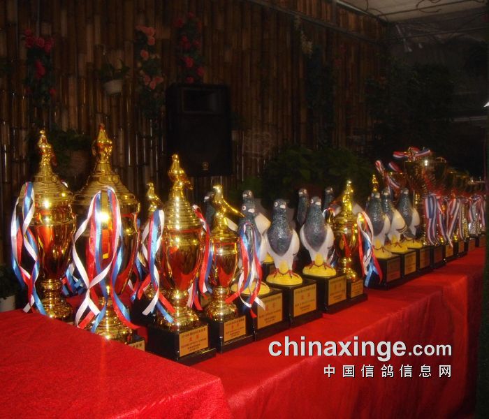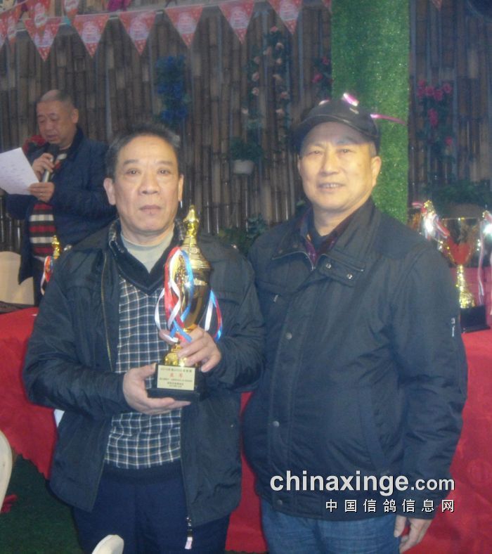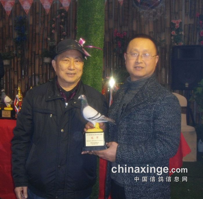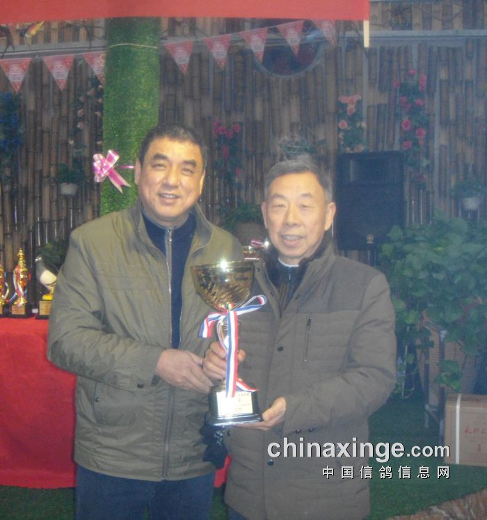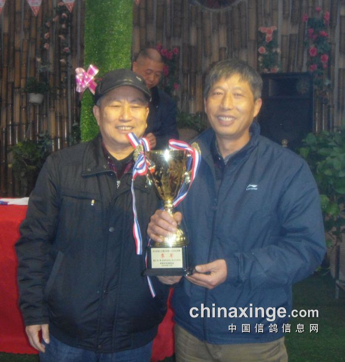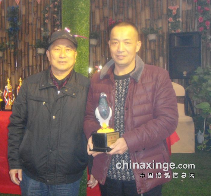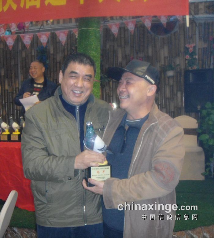原鸽会副主席[左]陈佳为获奖会员颁发奖杯