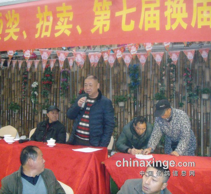 新当选的鸽会主席蒋大庆在发表就职演讲