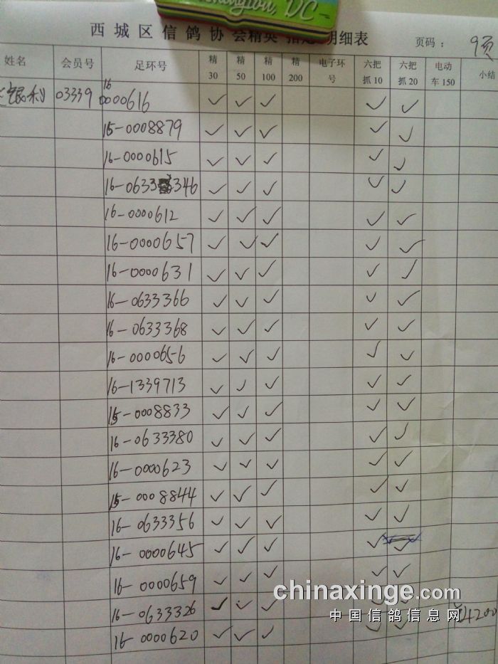 西城鸽会500特比第二关北区临时成绩