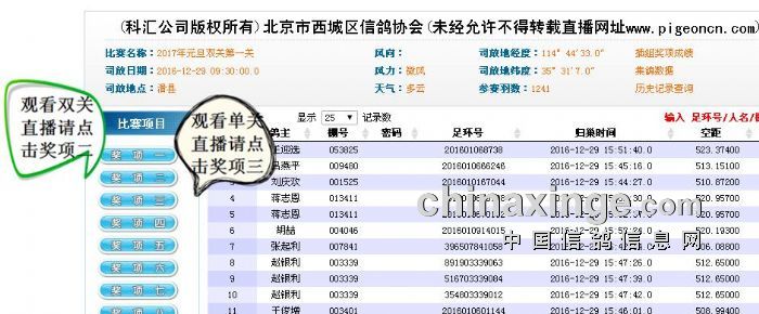 西城鸽会 关于元旦双关赛双关和单关直播说明
