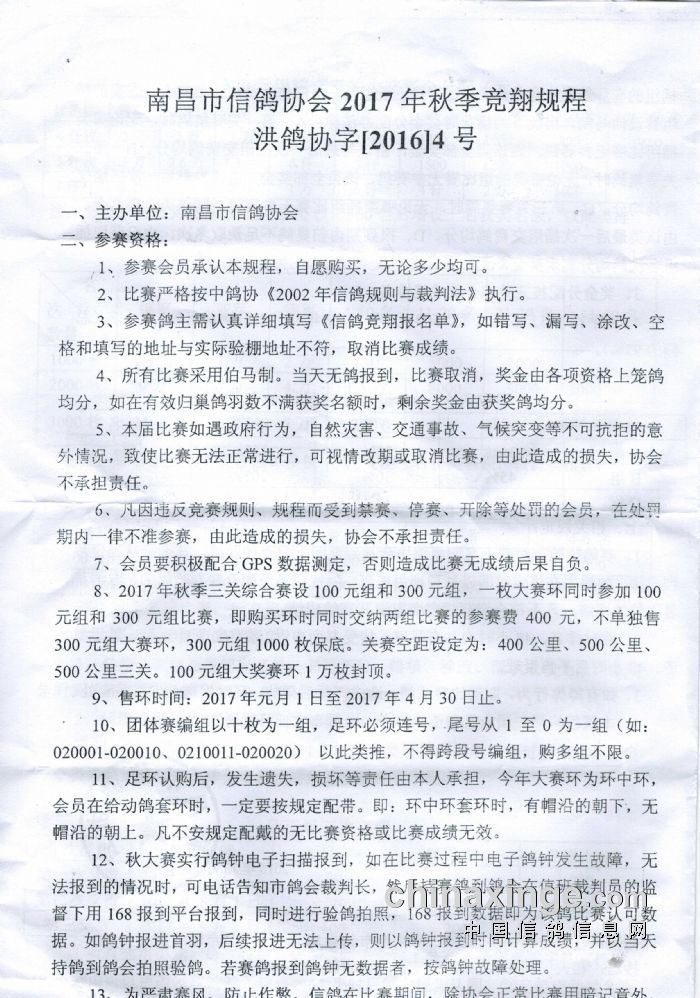 南昌市信鸽协会2025年春季大赛竟翔规程