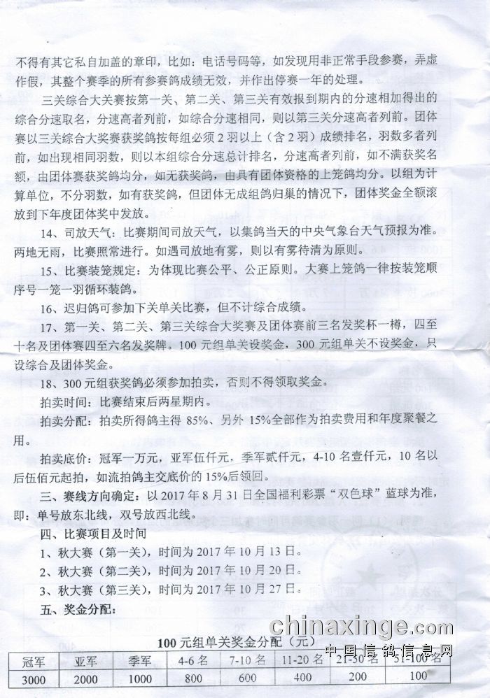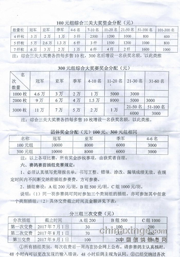 南昌市信鸽协会春季三关鸽王综合赛成绩