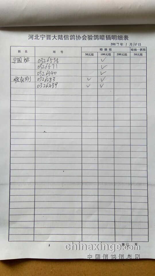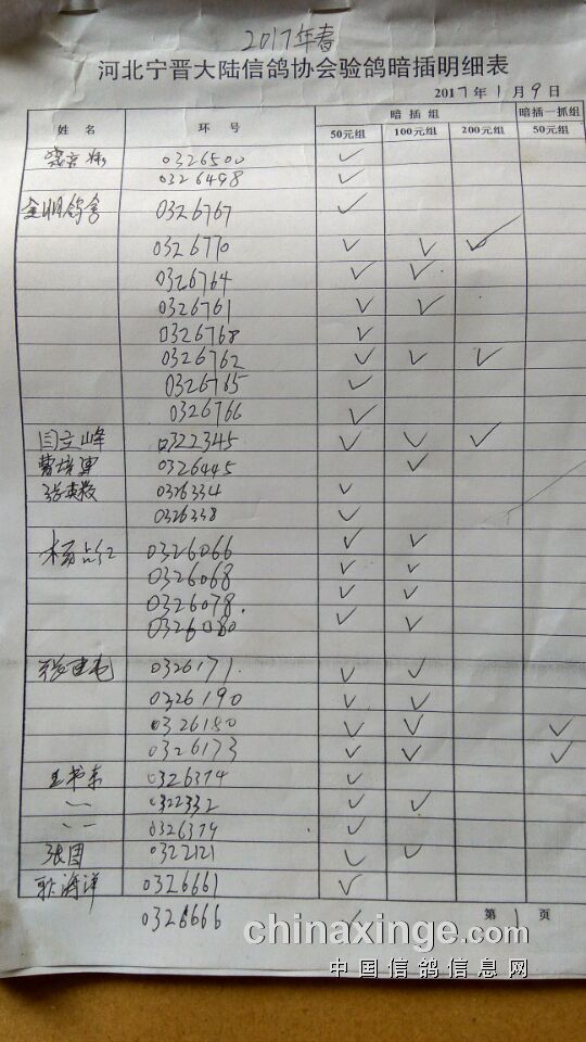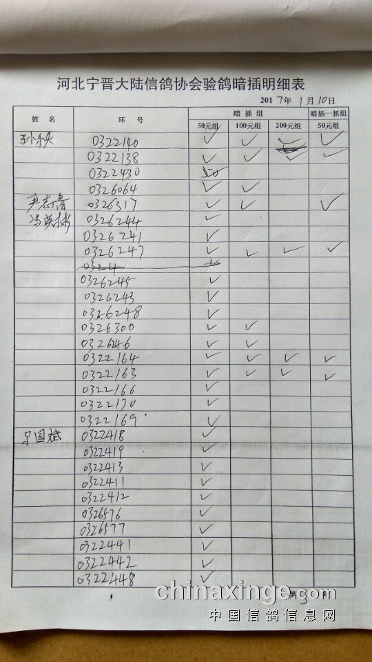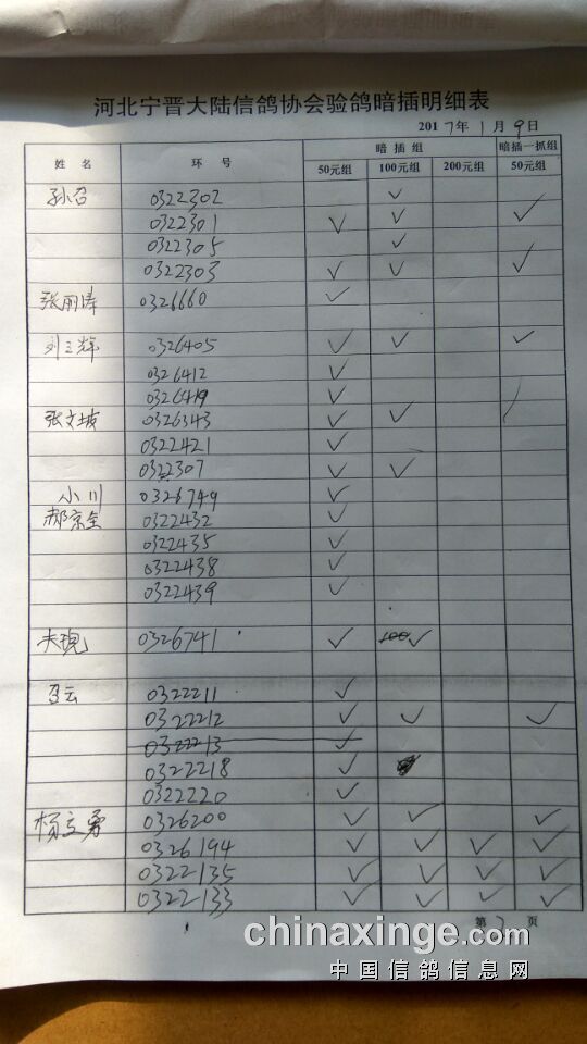 宁晋县大陆信鸽协会2017年春季特比环暗插清单