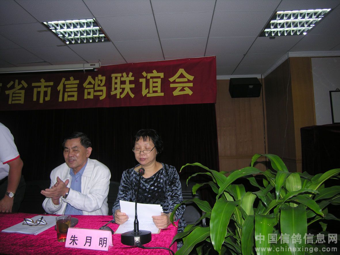 上海市鸽协副秘书长俞桑云在作经验介绍