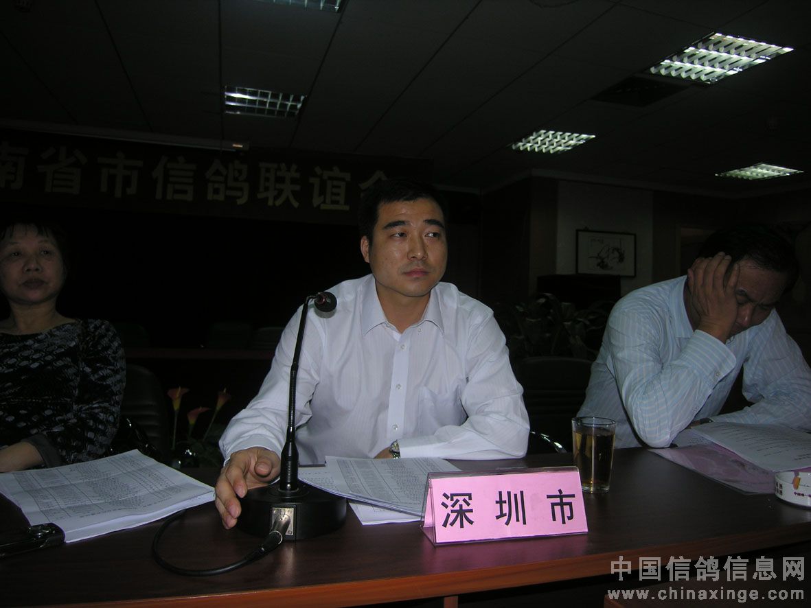 主持会议的朱月明、深圳市鸽协主席郑涛
