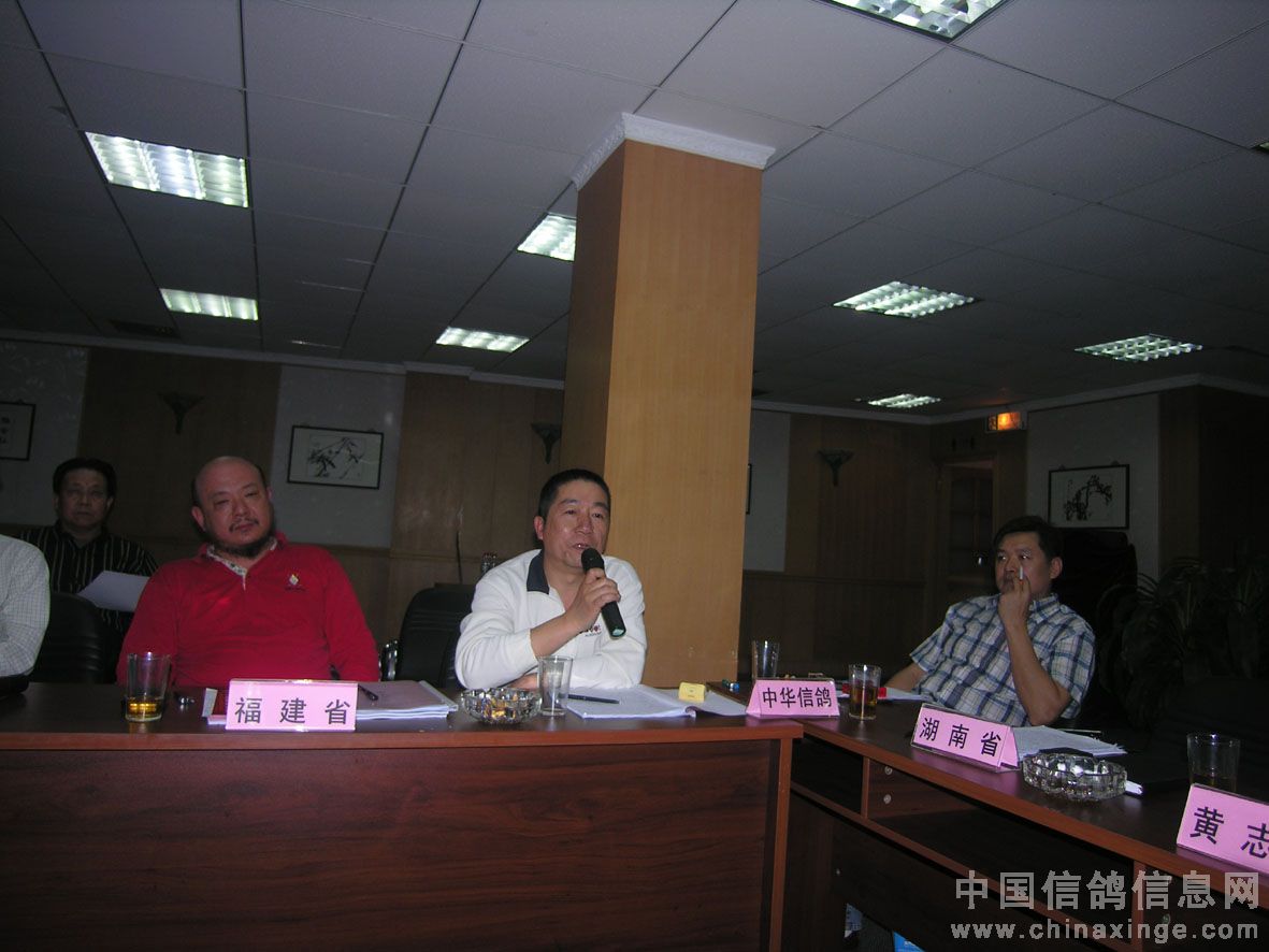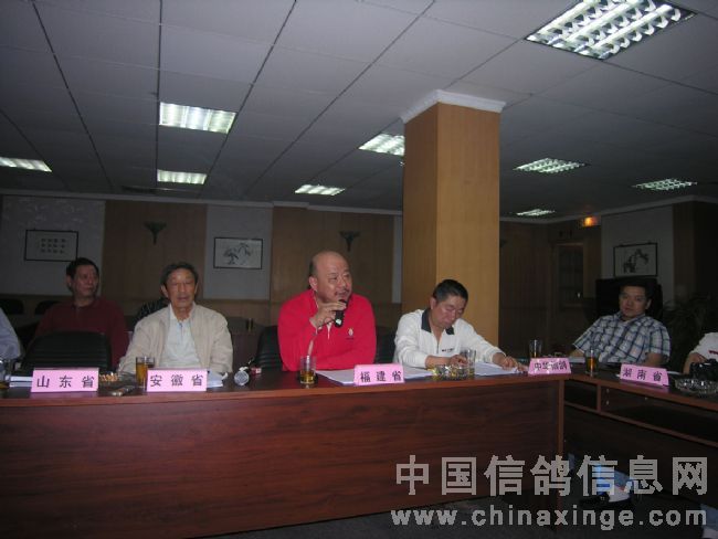 最近几年我国信鸽运动发展迅速,新事物、新观念、新技术层出不穷,使得各地信鸽协会对相互之间的交流有一种强烈的愿望,因此这次区域性专题会议得到空前重视,不但参与者发展到前所未有的11个省市,而且大家都在会前作了充分准备,仅提交会议的交流材料就有8篇。会上共有10个省市的鸽协领导进行交流,议题涉及“建国60周年信鸽比赛活动”、“五省一市联翔协调创新”、“抓好信鸽竞赛,提升社会效应”、“新形势下鸽协工作的思考与探索”、“推进赛事改革,创新竞赛方式”等等,在3月18日下午的大会讨论中,江苏省信鸽协会根据连续三次举办新疆哈密超远程比赛的体会,向会议代表作了“长三角信鸽超远程联赛探讨”的书面发言,对将于明年举办该项赛事的赛程、运输、组织协调等进行了分析,提出了具体建议。直到下午六点发言还在进行之中,当主持人宣布休会后,大家仍意犹未尽。当天还有一项议题是商定下届联谊会的举办地,主持人话音刚落,首次参加会议的湖南省鸽协副秘书长赵壁龙马上响应,并在现场用电话向领导请示后获得同意,做事干净利落的风格令人印象深刻。这从一个侧面反映了鸽协联谊会受到重视的程度。