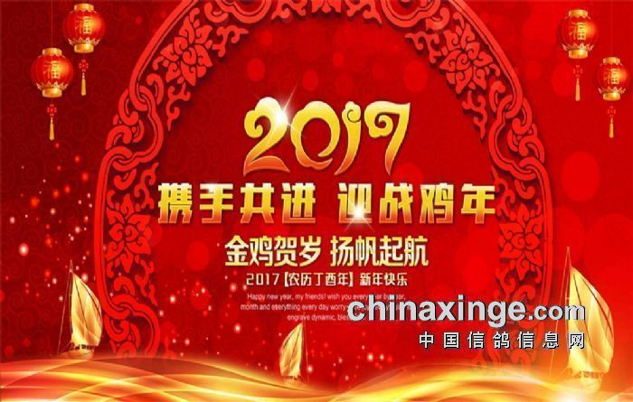 祝全国鸽友新年快乐,前程似锦,吉星高照,财运亨通,合家欢乐,飞黄腾达,福如东海,寿比南山!酒越久越醇,朋友相交越久越真;水越流越清,世间沧桑越流越淡。祝新年快乐,时时好心情!