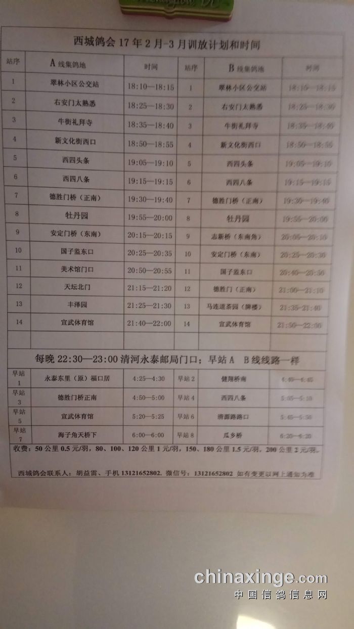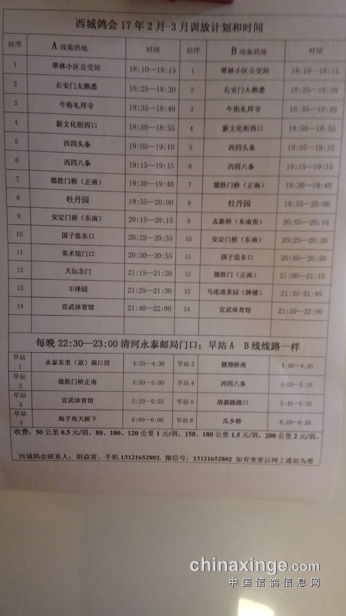 西城胡益雷今晚明早训50公里,B线免费。请互相转告。谢谢!