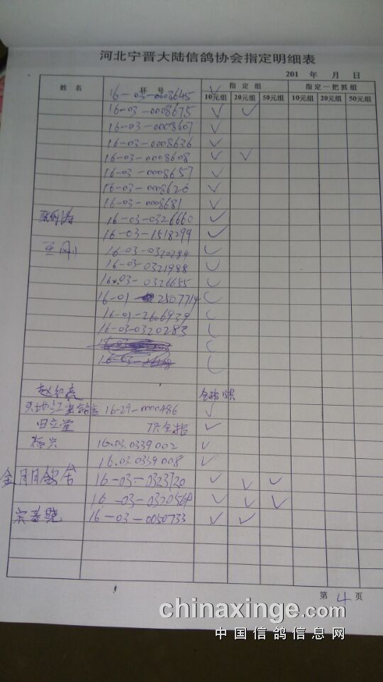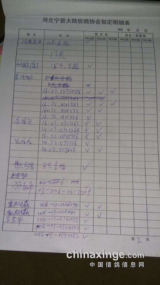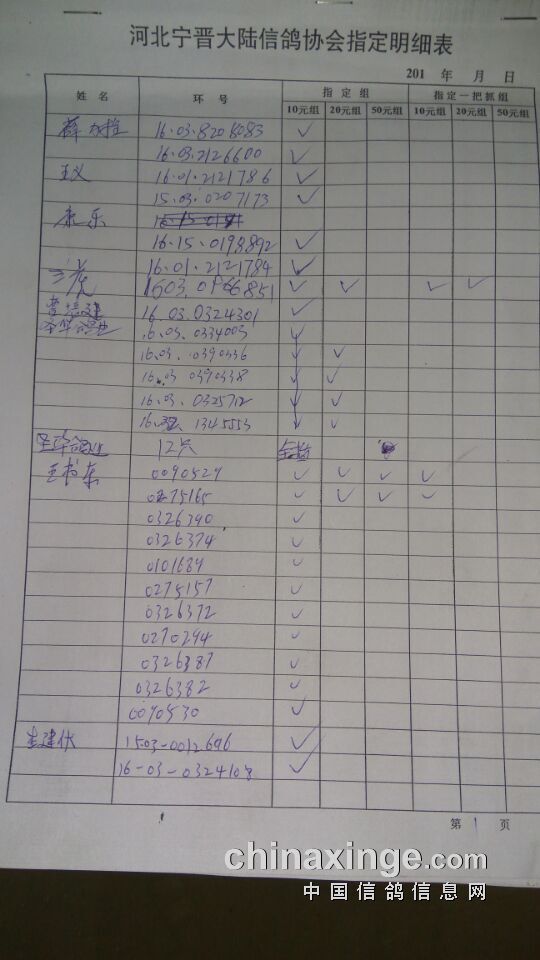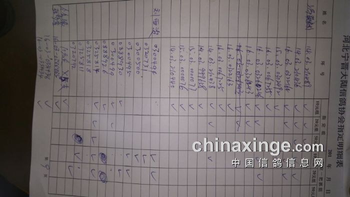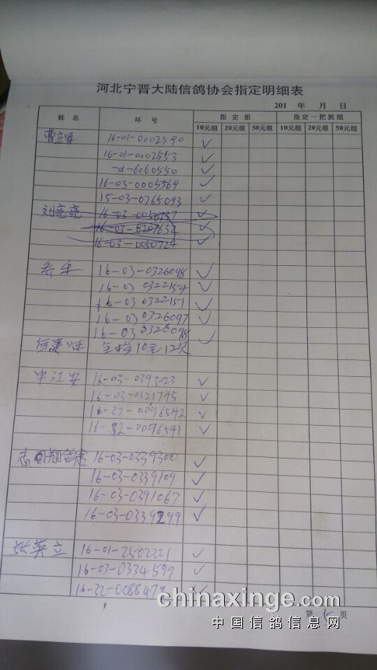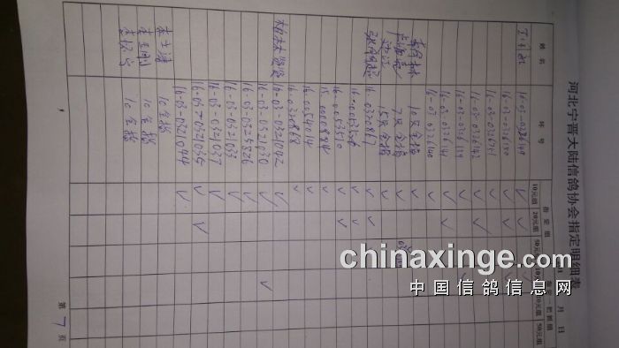 宁晋县大陆信鸽协会2017年春季180公里指定明细
