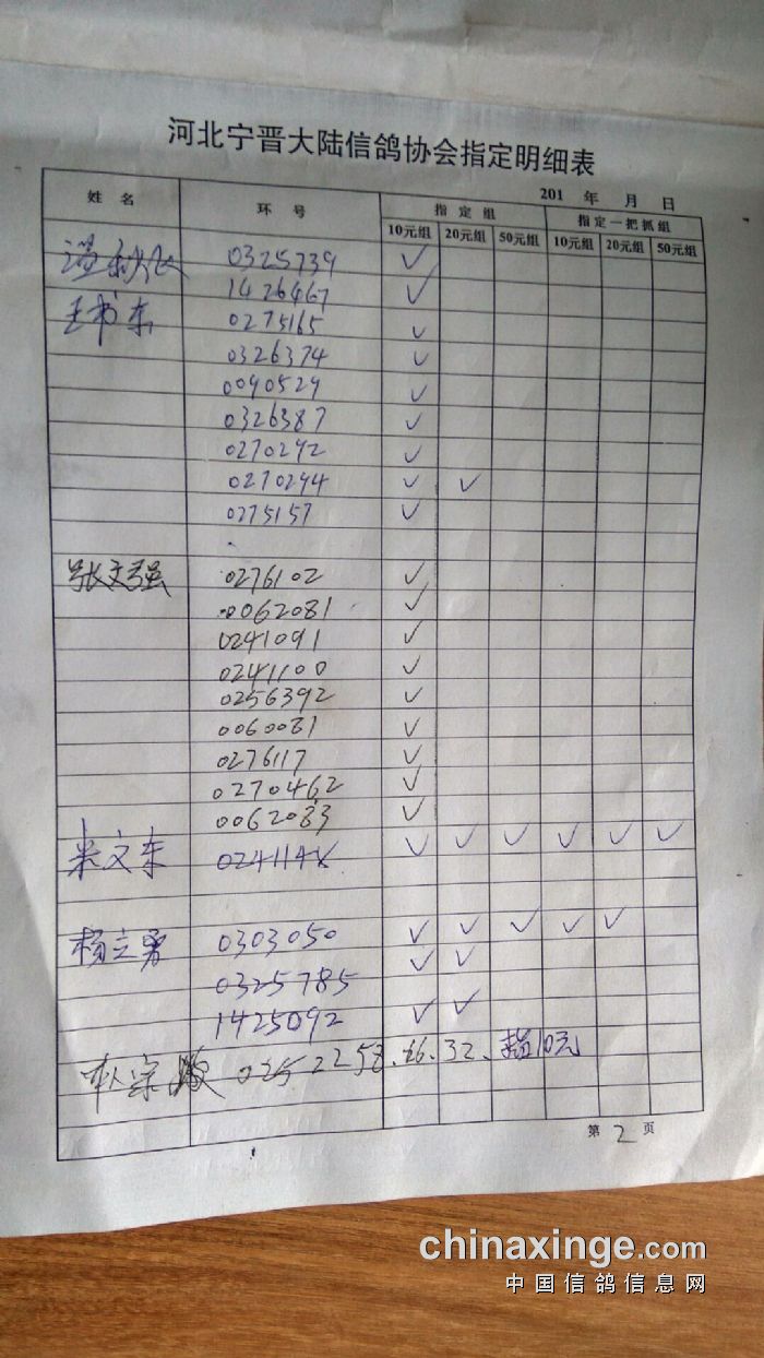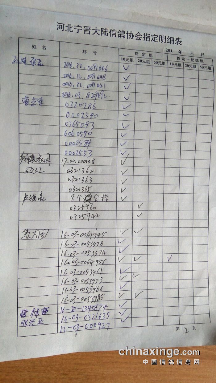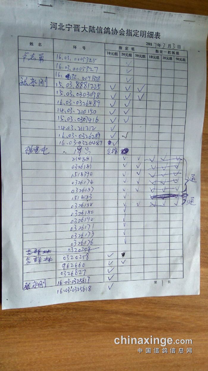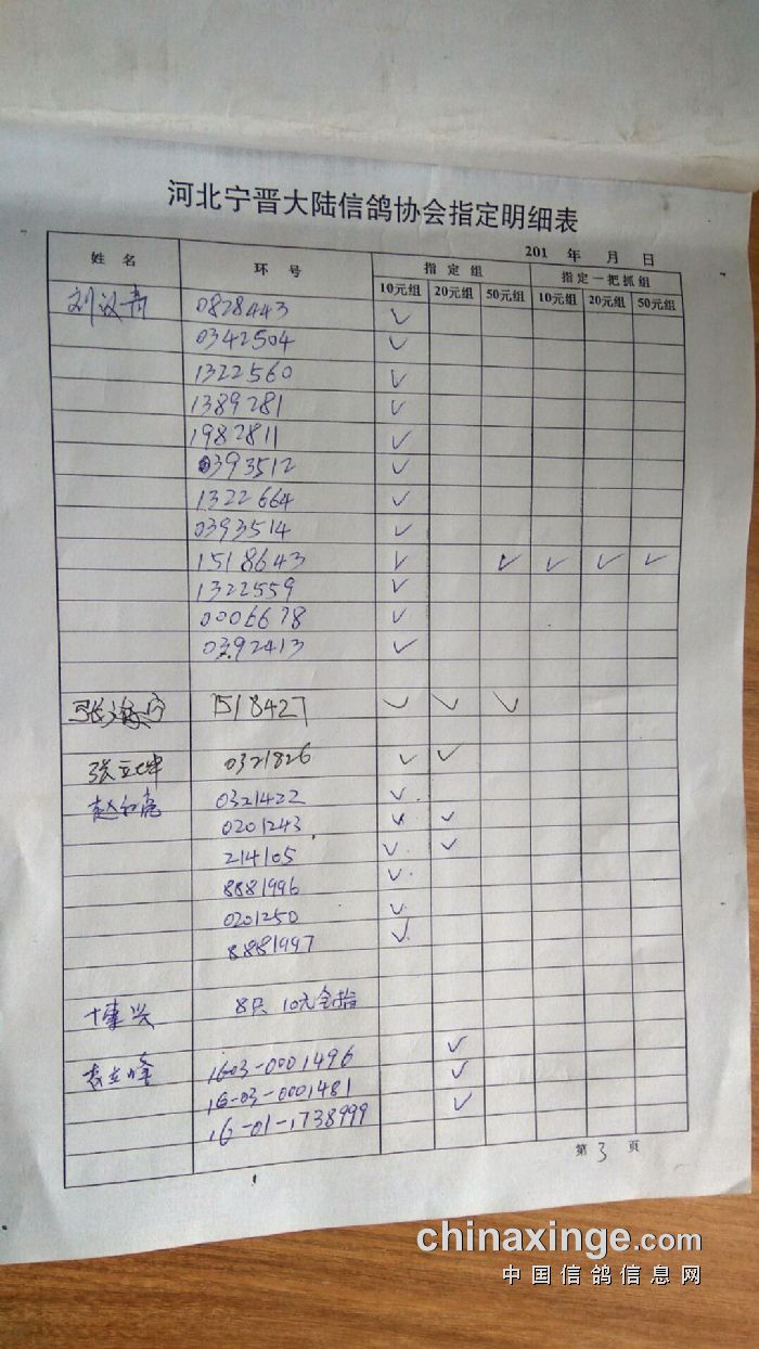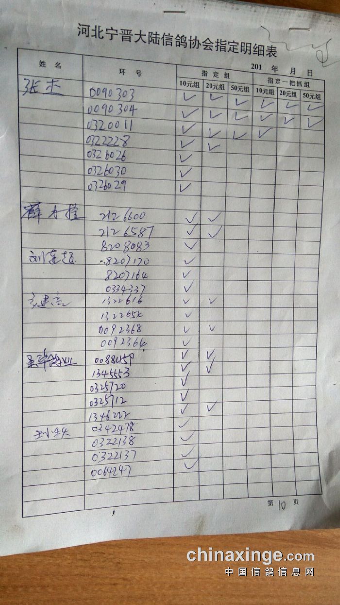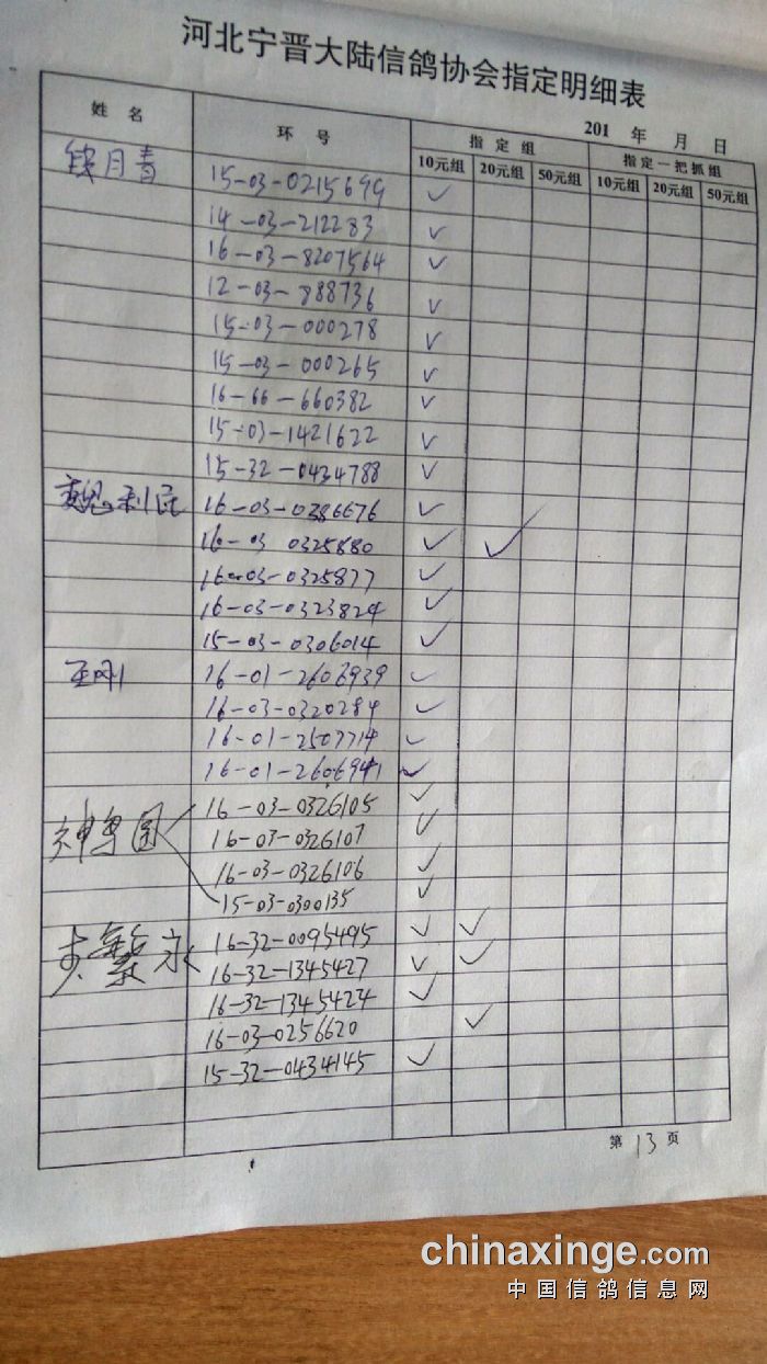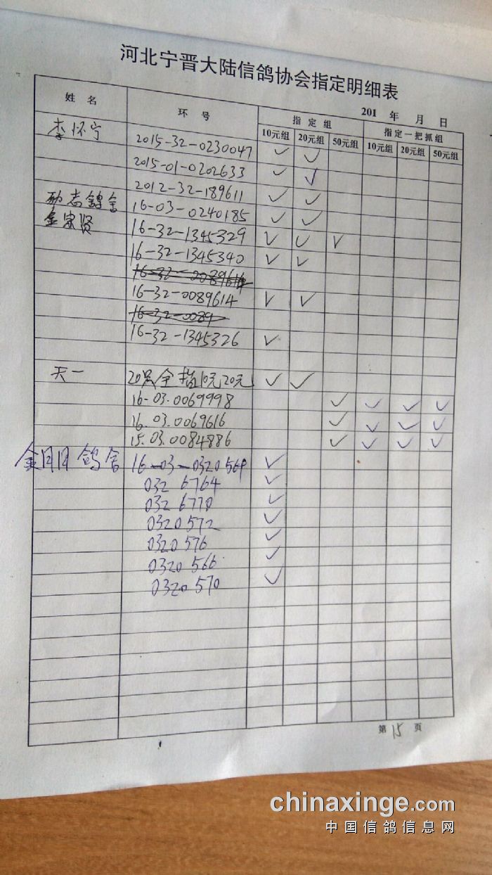 宁晋大陆信鸽协会2017年春280公里指定明细