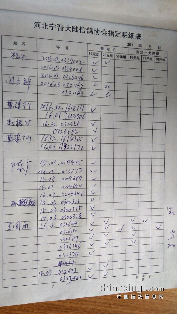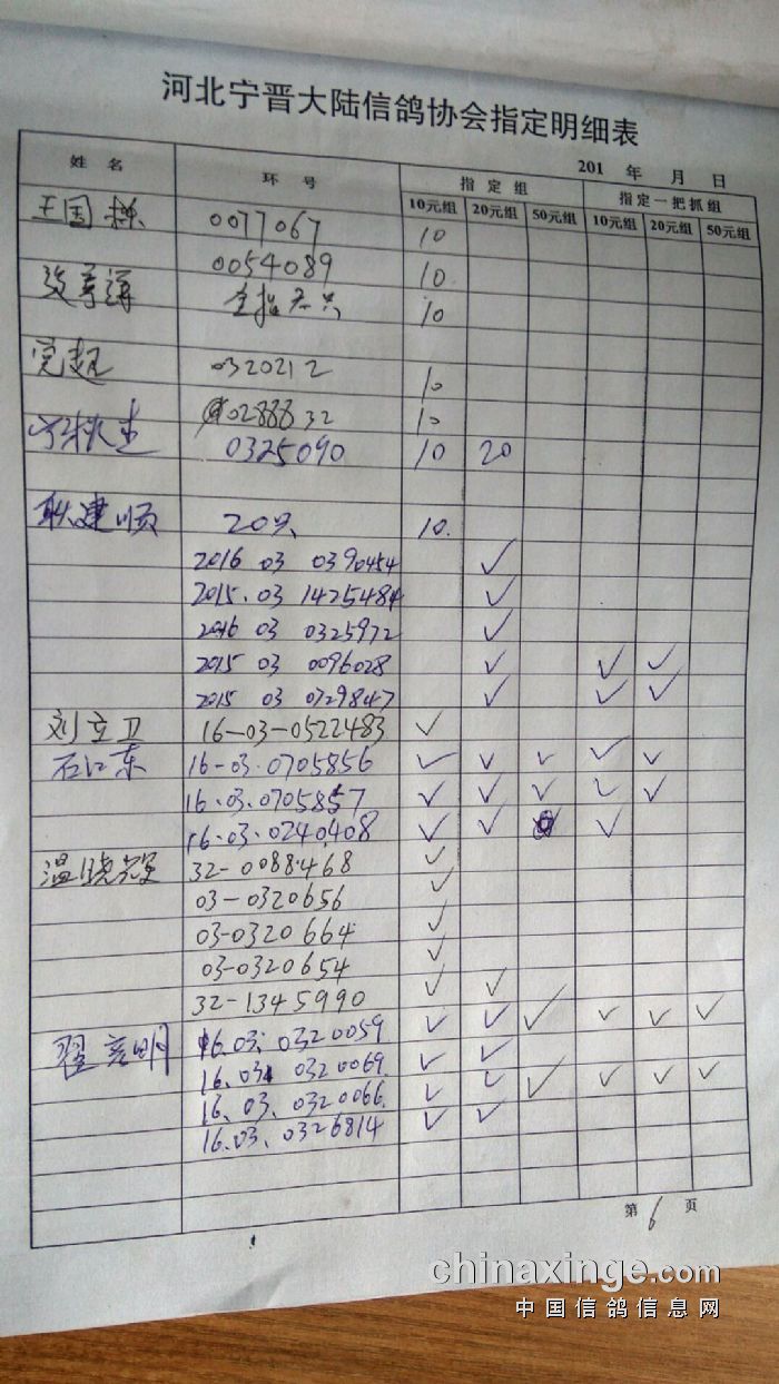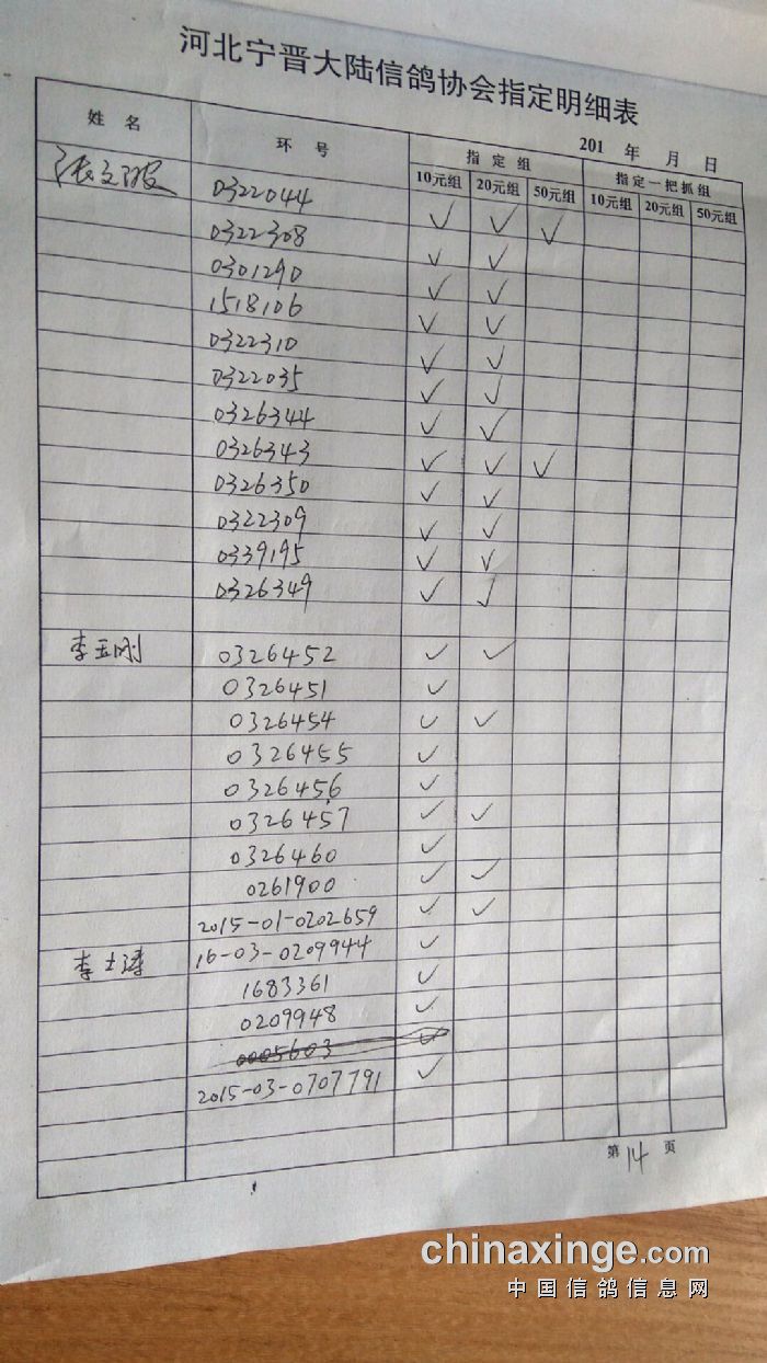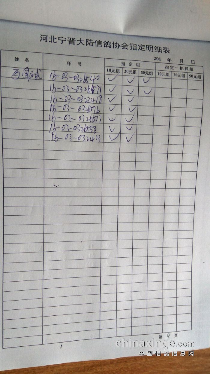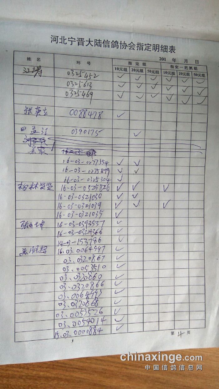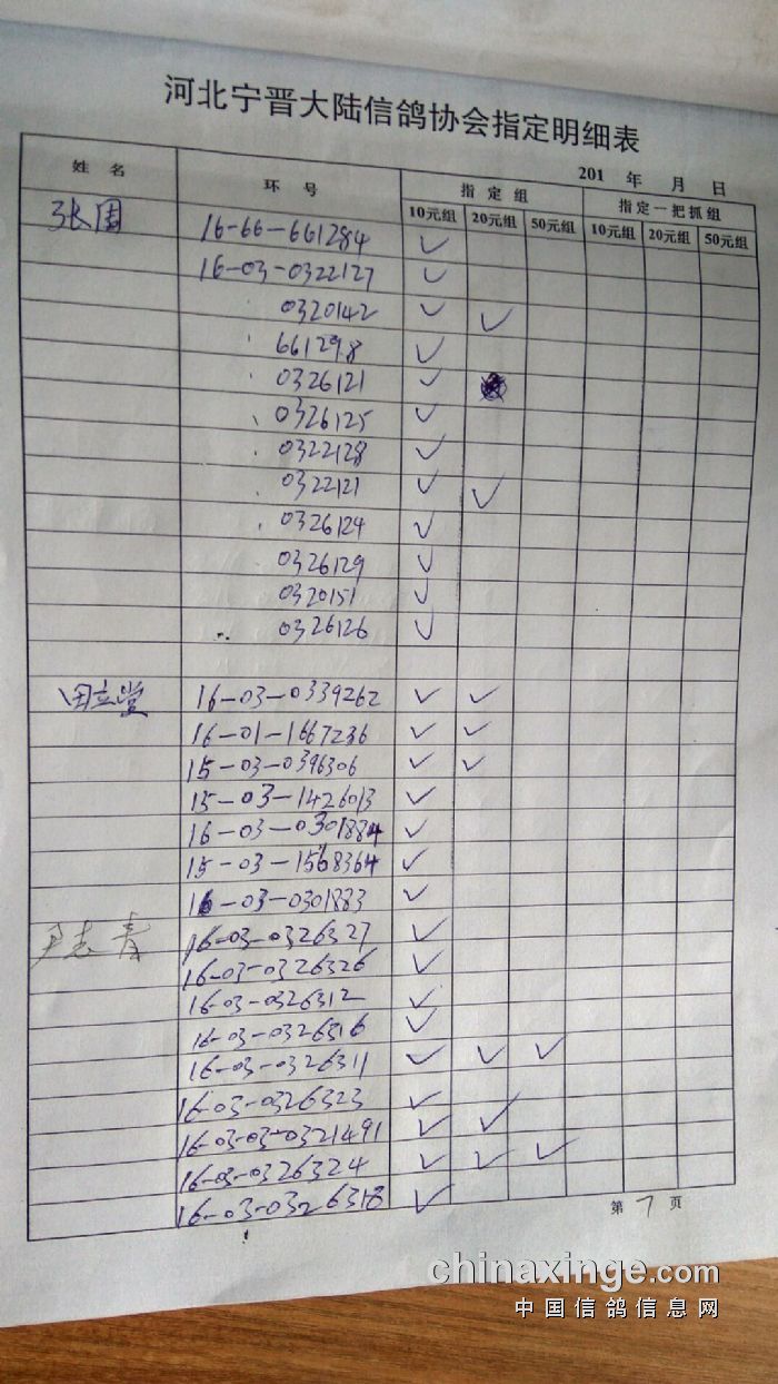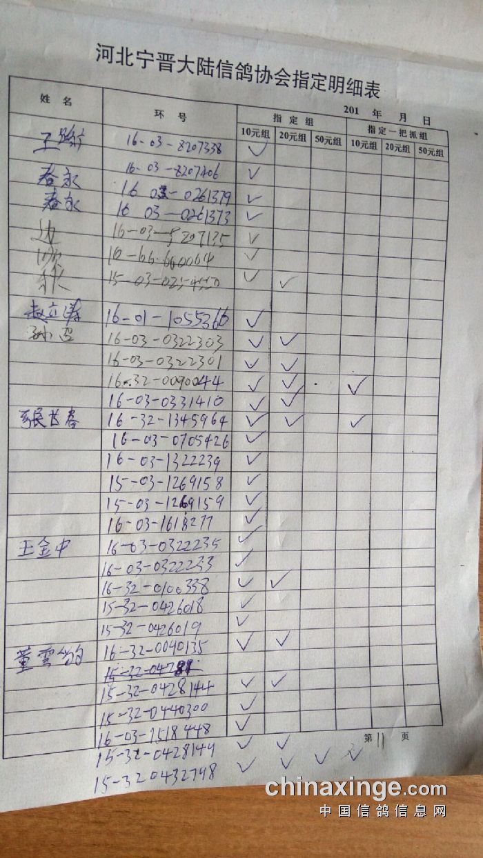 宁晋大陆信鸽协会2017年春280公里指定明细