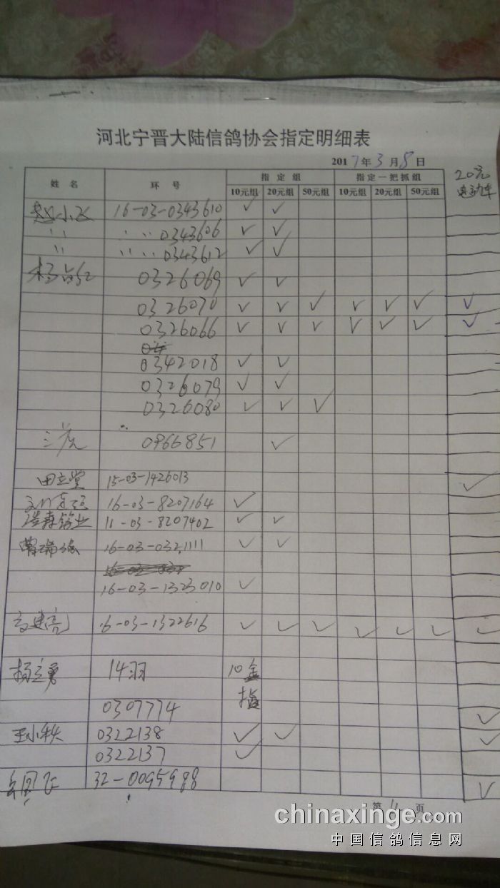 宁晋县大陆信鸽协会2017年春500公里各项指定明细