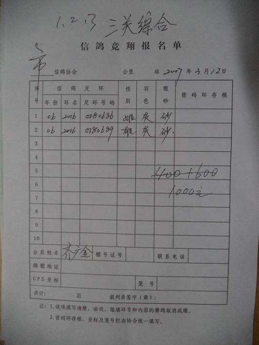 2024春季500公里(3)竞翔赛奖金