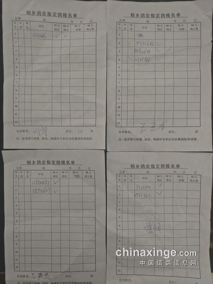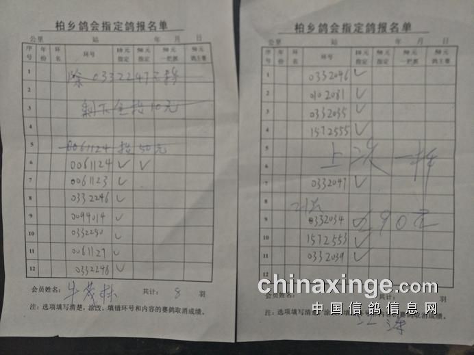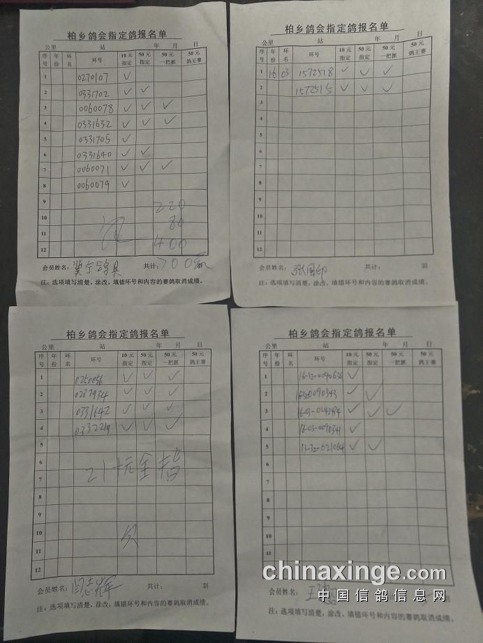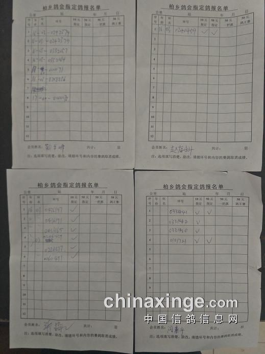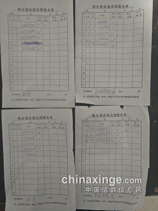柏乡鸽会280公里指定鸽清单核对截止到9点