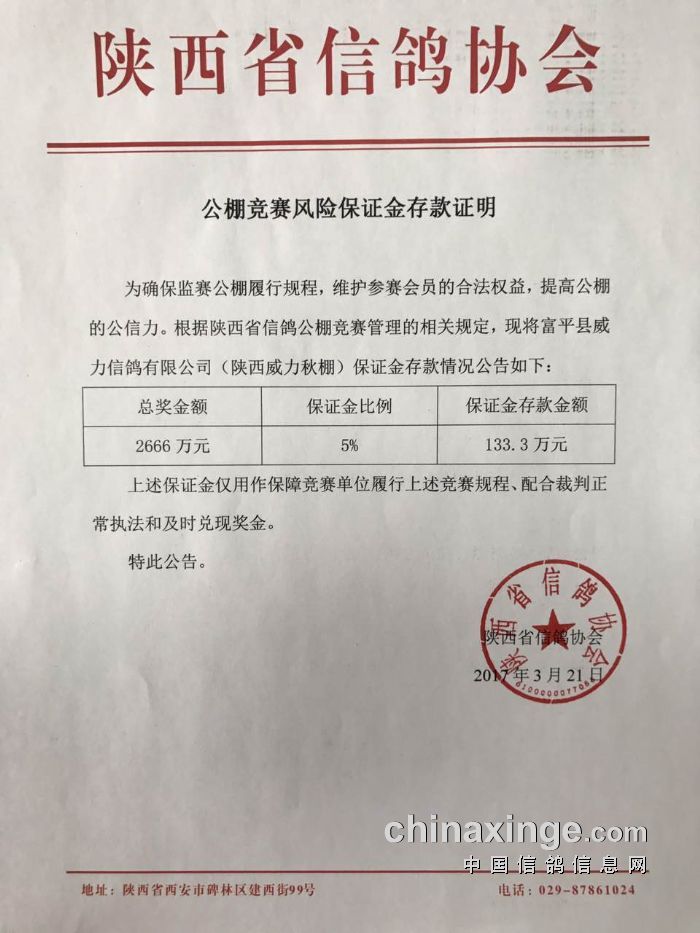 公棚竞赛风险保证金存款证明